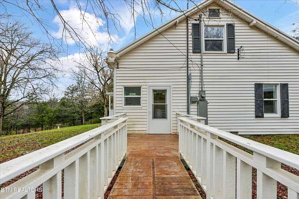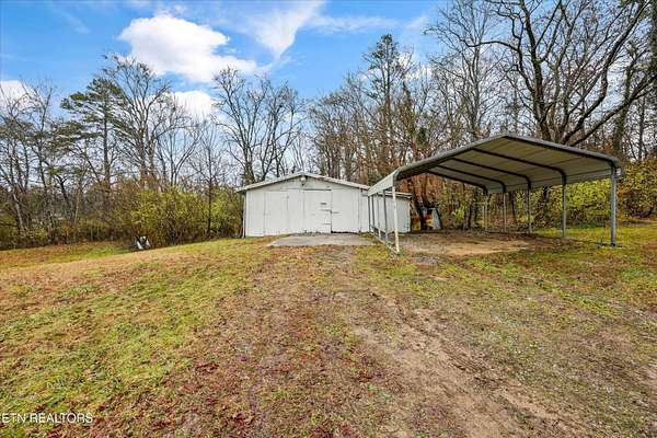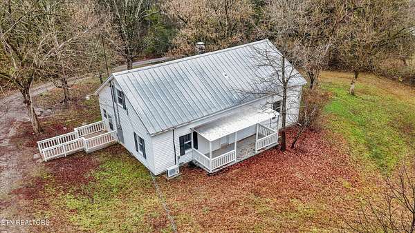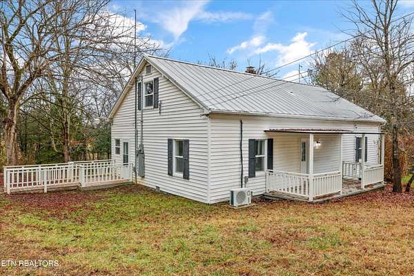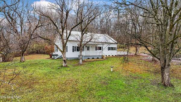 Back on the market after recently completed renovations, this charming 1945, 4-bedroom, 2-bath home sits on almost 4 acres and offers privacy, space, and incredible potential of additional home/rental sites. The interior has been beautifully updated with new flooring, fresh paint, modern lighting, and a fully remodeled kitchen featuring new cabinetry, granite countertops, subway-tile backsplash, stainless appliances, and a large window overlooking the wooded property. There is a primary bedroom with en suite bathroom on the main level with split second bedroom and bathroom. The spacious and comfortable living area offers views of your beautiful front porch and acreage. Upstairs are two additional bedrooms with enormous closets and storage area. The covered front porch is perfect for sippin' sweet tea on the front porch swing enjoying the peaceful surroundings. Additional updates include HVAC, front porch railings, plumbing, electrical, AC upstairs rooms and all new windows. Outside, the land shines with a 1000sqft garage/workshop, carport, storage shed/small barn with NO Restrictions. Bring the chickens and/or minifarm! Wildlife is abundant with deer and turkeys frequently visiting the property. Plenty of room for a pool, playset or building a treehouse. There is an additional cleared land area for additional homes/rental sites, a large garden area, and/or barn/workshop area with public water, electric, AND public sewer, giving you room for expansion, investment opportunities, or multi-generational living--all while the main home remains private. With acreage, updates, and usable infrastructure, this property offers both move-in-ready comfort and long-term potential. Country living while being close to stores & downtown Knoxville. Don't miss seeing this incredible home and property! All information deemed reliable but Buyer/Buyers agent to verify.