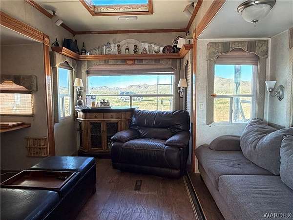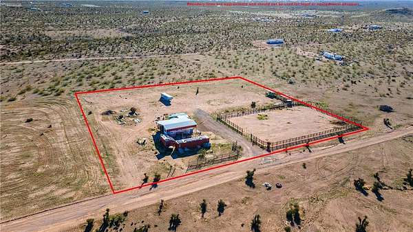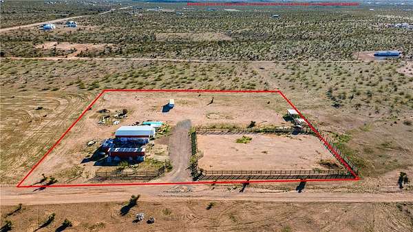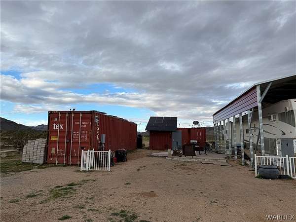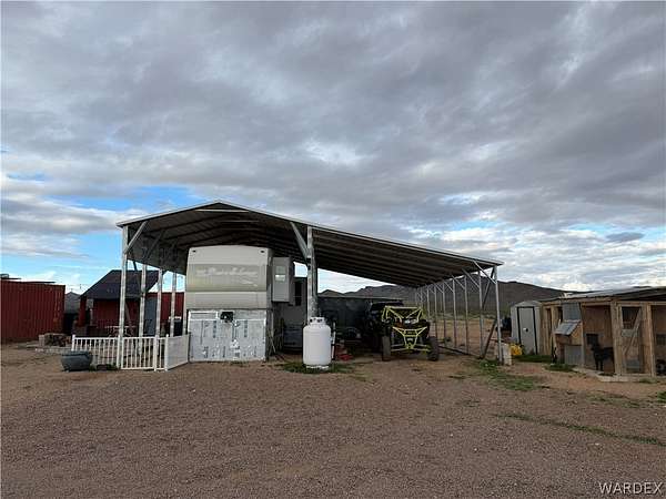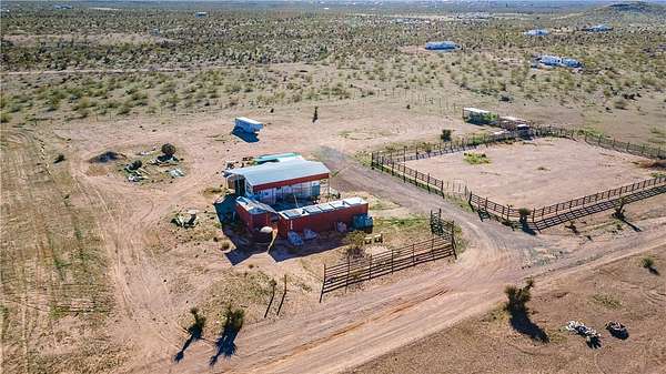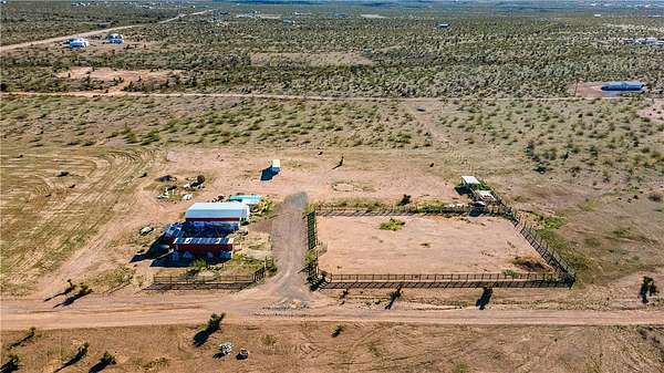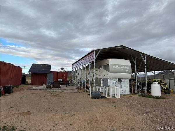 Welcome to your off-grid dream spot!! Located in the beautiful deserts of Arizona, this 2.35 acre parcel has unbeatable views of the surrounding mountain ranges. Features include: 2004 37' 5th wheel w/ full hookups. 6000 watt, 240v solar with battery and generator backup. 2nd 6000w controller ready to hookup that will double power load capabilities. Two 2500 water storage tanks. Permitted septic designed for a 4 bed 3 bath home. 120'x140' fenced horse runout area. 40' x 9' and 20' x 8' shipping containers wired for lights and power. 30' x 40' x 14' metal cover for RV and parking. 20 x 20 brick paver patio. 25' wide and 100' long gravel driveway. Laundry Hookups/appliances in smaller shipping container. This location is primed and ready to make your off-grid living dreams a reality. Call your agent today and come experience the peace and tranquility of this incredible property.