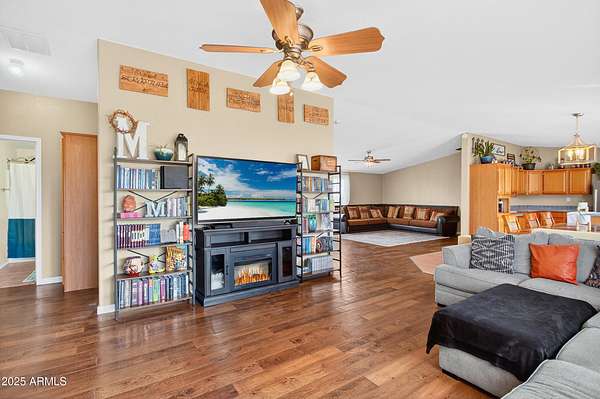 This well maintained 4 bedroom, 2 bathroom home sits on 4 private acres with a shared well and an open-concept layout. With two living areas, it's perfect for families and gatherings, or flexible work and play space. The floorplan flows naturally with plenty of room to spread out, relax, and enjoy the quiet surroundings. If you're looking for land, space, and comfort all in one place, this one checks the boxes.