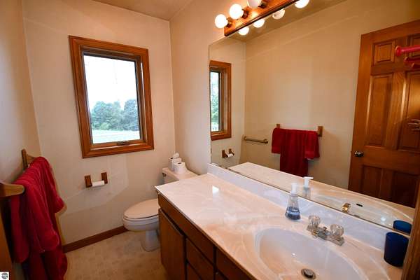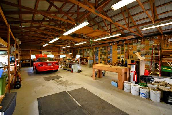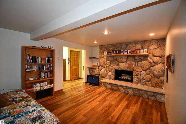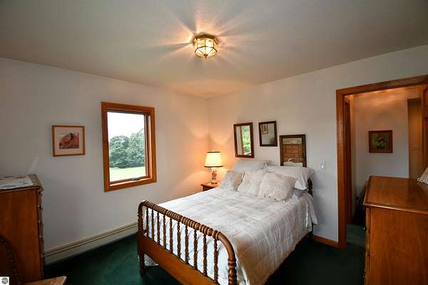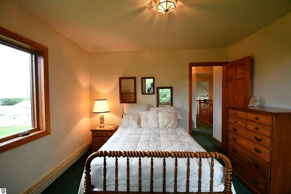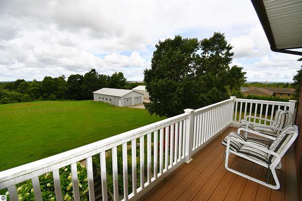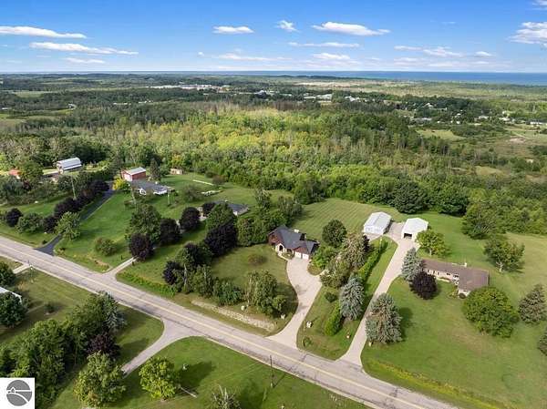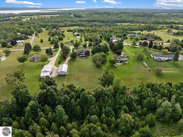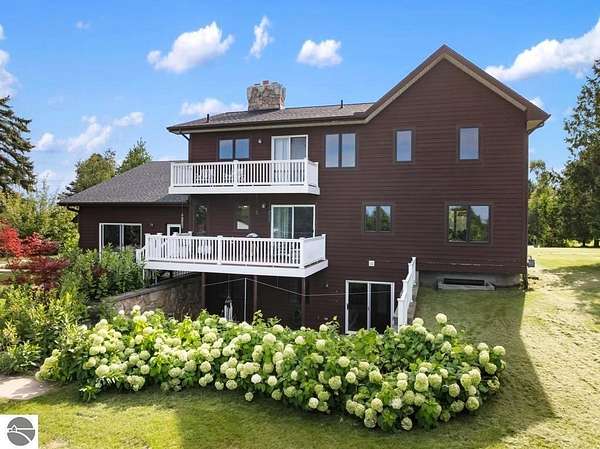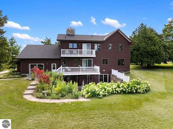 Discover the perfect blend of style, comfort and functionality in this exceptional 5-bedroom, 3.5-bath home, designed for both grand entertaining and everyday living. Step inside to find two inviting family rooms, each anchored by extraordinary fireplaces, and two dining areas ideal for hosting gatherings. The open-concept kitchen flows into the living spaces, while a main-floor laundry adds everyday convenience. Two bedrooms offer serene views of rolling fields and one a peek at Lake Michigan, while the luxurious master suite is a true retreat--featuring a full bath, a private balcony with expansive Lake Michigan vistas, and its own extraordinary fireplace. The finished walkout basement extends your living space with a large patio, craft room, full bath, sleeping room, two additional bedrooms, and a cozy family room with fireplace--perfect for guests or multi-generational living. Outside, a 30' x 60' pole barn comes equipped with a newer zero-turn lawn mower (with implements), a golf cart, and a generator hooked up for peace of mind. This 2.85-acre estate offers the rare combination of Lake Michigan views, abundant space, and practical extras--all in a location that captures the beauty of Northern Michigan living, and within two miles to downtown Charlevoix.