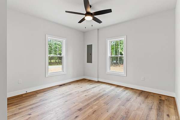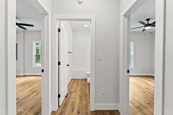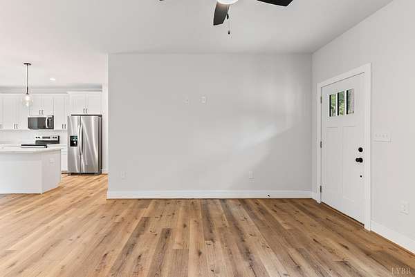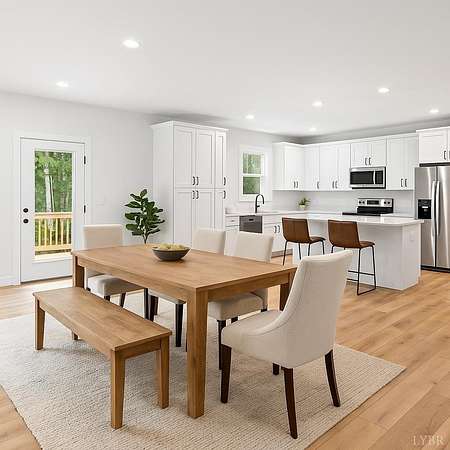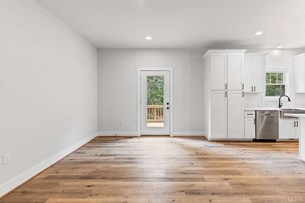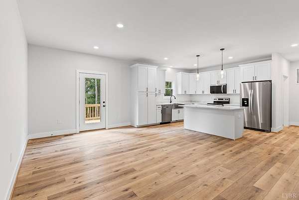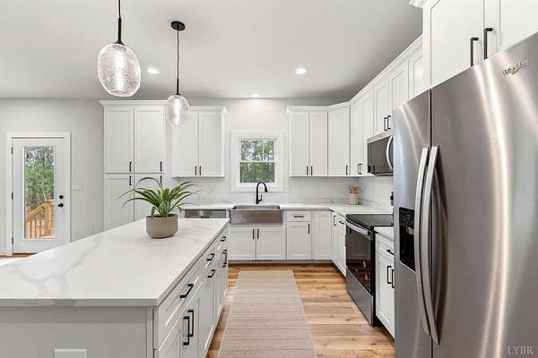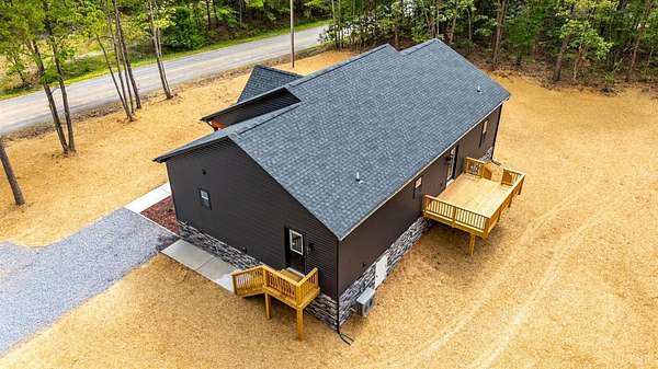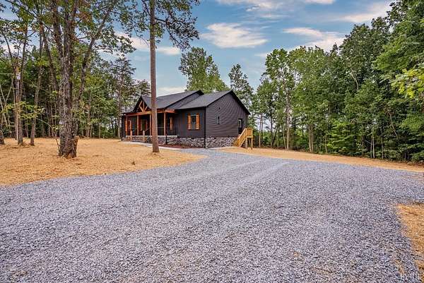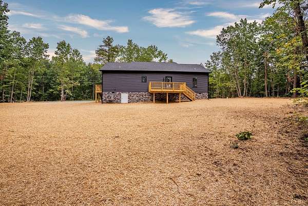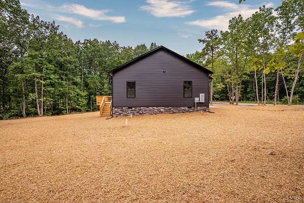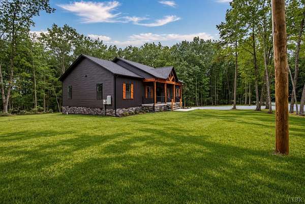 Ready for its new owner!! Discover modern comfort in this beautifully crafted 3-bedroom, 2-bathroom home on a private wooded lot at 594 Community Road, Dillwyn, VA. Built by one of Buckingham's most meticulous contractors whose houses are sought after now and for years to come, this brand-new construction features striking dark siding with natural stone accents and warm cedar shutters. Inside, enjoy open-concept living with luxury vinyl plank floors, a designer kitchen with white cabinetry, quartz counters, stainless appliances, and spacious island. The dramatic covered front porch showcases exposed timber framing, while the rear deck and gravel driveway complete this move-in ready retreat. Perfect blend of contemporary design and rustic charm in a tranquil setting surrounded by mature trees. Centrally located to Charlottesville, Appomattox, Lynchburg, and Amherst County.