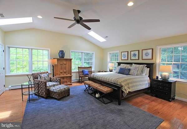 Located in the award-winning T/E School District, this beautiful hilltop home offers incredible views and a peaceful, private setting on 1.5 acres. The property features a great mix of open lawn space, a small pond and stream, wooded areas, and amazing skyline views you can enjoy year-round. Inside, the home is spacious, comfortable, and full of natural light. The foyer runs from the front to the back of the house and leads into a large living room with a wood-burning fireplace and floor-to-ceiling windows. The updated kitchen was recently expanded and includes granite countertops, a tile backsplash, double wall ovens, a Sub-Zero refrigerator, and a bright breakfast area with lots of windows. The formal dining room is perfect for hosting, while the family room offers a second fireplace, built-in bookshelves, and French doors that open to a front stone patio. The primary suite features vaulted ceilings, a walk-in closet, and a beautifully updated bathroom with double vanities and a large shower. Upstairs, you'll also find four additional bedrooms, two full bathrooms, and a convenient second-floor laundry room. The finished basement adds even more living space with a game room, wet bar, full bathroom, and plenty of storage. There is an attached side load two car garage with plenty of driveway parking and a large mudroom with cubbies and closet space. Landscaping and lawn maintenance are included in the rent, so you can enjoy the property without the extra work.