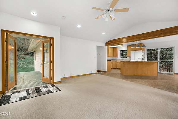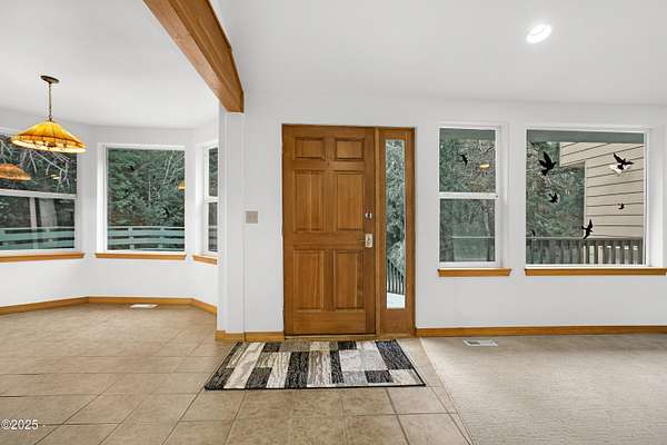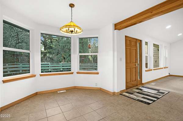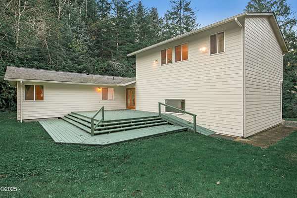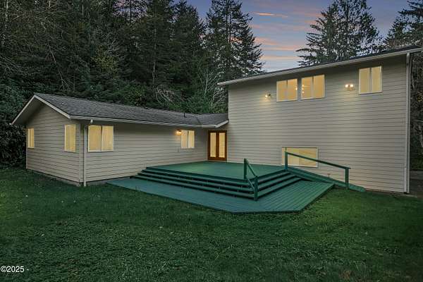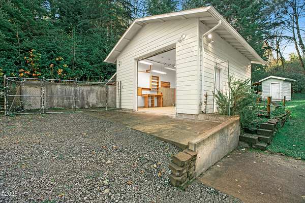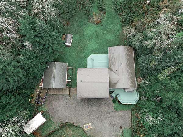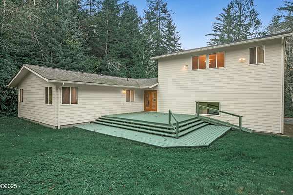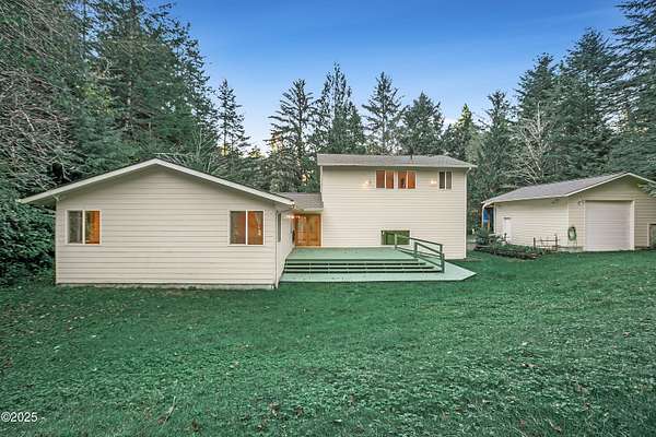 PRICE REDUCED! Private 3.5-acre coastal retreat with shop & garage, minutes to town. NOW PRICED TO SELL AT $599,000. Enjoy total privacy surrounded by trees while staying close to beaches, restaurants, and essentials. The home's open layout and vaulted ceilings create bright, airy living spaces. Two cozy main-floor rooms work beautifully as offices or hobby spaces, while the spacious upstairs primary suite serves as a quiet retreat. Outdoors, relax on the deck overlooking your private pond or tinker in the oversized shop with RV/boat storage and 2 car garage. Only one flat acre to maintain; easy upkeep with riding mower included. No HOA. Recently reduced and priced below comps! This is the only property over 3 acres in Newport at this value. Your Oregon Coast retreat awaits!