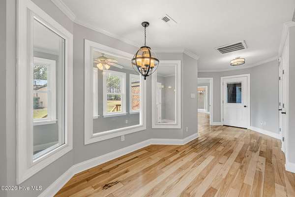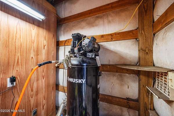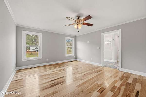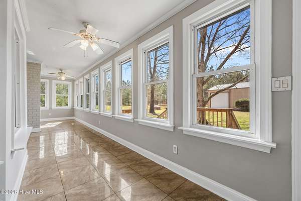 Situated on approximately 2 acres in a quiet rural setting, this property offers space, functionality, and convenient access to nearby waterways and town amenities. Located just minutes from a boat ramp on the Northeast Cape Fear River, the home is also within 10 minutes of Burgaw Elementary and Middle School, about 20 minutes to Heide Trask High School, and roughly 30 minutes to Wilmington and Jacksonville. Inside, the home features hardwood flooring throughout much of the main living areas, an open-concept layout, and a vaulted living room with skylights and a gas fireplace that fills the space with natural light. A sunroom overlooking the fenced backyard provides an additional living area to relax or entertain. The finished room over the garage offers flexibility for a guest room, office, or hobby area, and the home is serviced by a heat pump with central AC zoned between the attic/primary area and the remainder of the home. The crawl space was fully encapsulated in June 2022, and the roof was replaced in November 2022. Outside, the property includes an oversized garage capable of supporting full-size 3/4-ton pickups and a detached shop designed for both work and storage. The shop features a 30-amp outlet for trailer hookups, a 60-gallon air compressor (155 PSI), its own water heater, washer and dryer hookups, and a full bathroom, and is large enough to store a 30-foot camper. Additional features include a high-flow private well capable of watering the yard and supporting household use, septic system, county-regulated drainage system, and a fully fenced backyard with a dog door already installed. This unique property offers the flexibility of rural living with room for hobbies, equipment, and outdoor recreation while remaining within easy reach of town and coastal destinations.