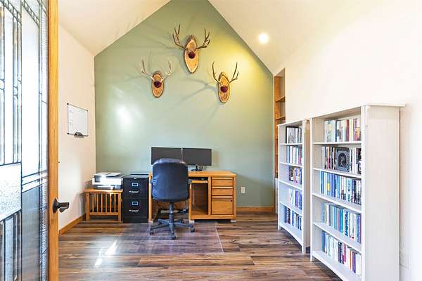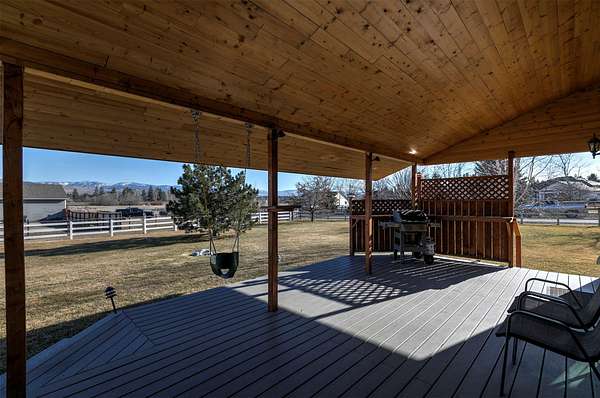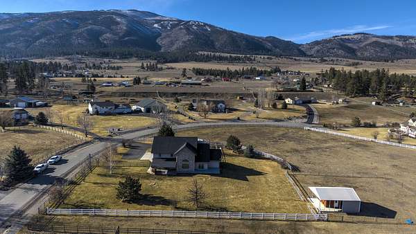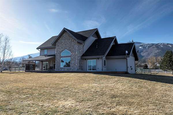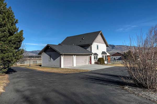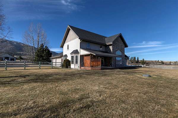 Welcome to 5942 Cunningham Court, where Montana living meets everyday comfort. Set on 3.8 acres on a quiet cul-de-sac street in Florence, this property offers space and functionality with a perimeter fence and a separately fenced backyard-ideal for animals, pets, or future pasture use. The home is thoughtfully designed for both daily living and entertaining, featuring inviting, light-filled living spaces. The main level offers an open floor plan with a vaulted ceiling in the living room, a large covered back patio off the dining and kitchen areas, a primary suite with ensuite bath, an office/den, and an additional guest bathroom located off the mudroom. The mudroom leads directly into the three-stall garage, providing plenty of room for vehicles, gear, and outdoor toys. Upstairs, you'll find a spacious lofted area, two additional bedrooms, full bathroom, and a smaller upper loft, offering flexible living or recreational space. Step outside to wide-open surroundings that lend themselves beautifully to an animal-friendly lifestyle, with ample acreage to explore options for corrals, pasture, or riding space. An outbuilding with three kennel spaces and additional storage adds versatility and could easily support tack storage, feed, or equipment-making this property a great option for those with animals. With convenient access to Bitterroot Valley trails, open spaces, and town conveniences just a short drive away, this property blends a rural setting with everyday comfort.