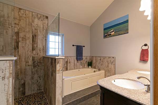 - Fireplace, Main Level Primary, Open Floorplan, Vaulted Ceilings, Walk In Closets