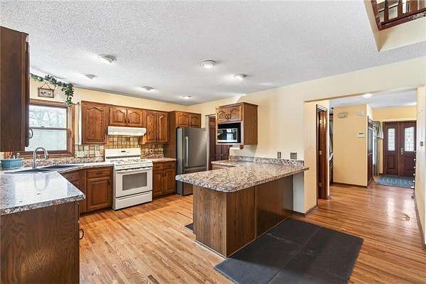 Welcome Home! Beautiful Two Story Home on 10 Acres. What a Tranquil Setting. Long Driveway, Mature Trees, Great Place to Call Home! 30x48 Pole Building for Plenty of Storage, Plus an Additional 3 Car Garage. Access the Lower Level Heated 21x19 Spancrette Garage from Lower Level. Above is a Large 2 Car Garage. This Home has Hardwood Floors Throughout most of the Main Level. Stunning Wood Burning Fireplace. Huge Enclosed and Finished Porch with Stunning Panoramic Views. This Home has 4 Bedrooms & 4 Bathrooms. Stunning Private Primary Bedroom & Bath which includes a Sauna, Jetted Tub & Separate Shower.