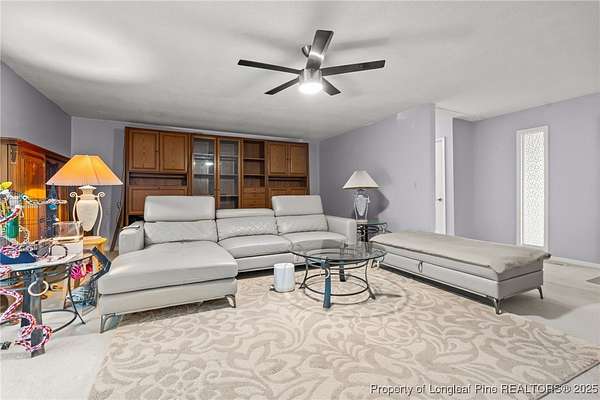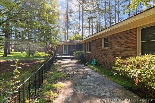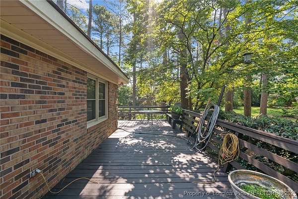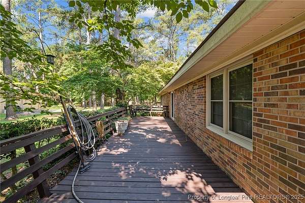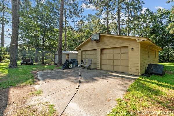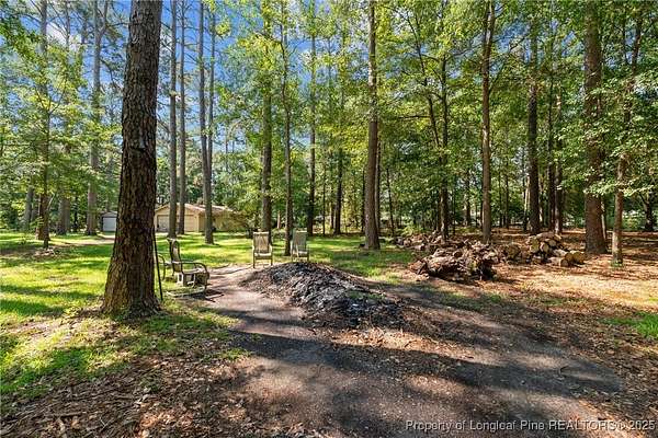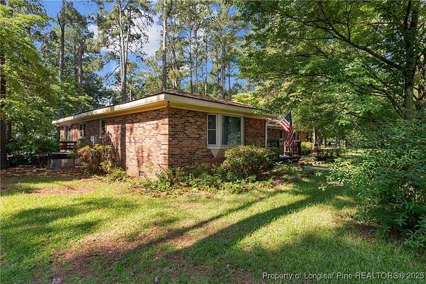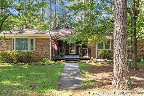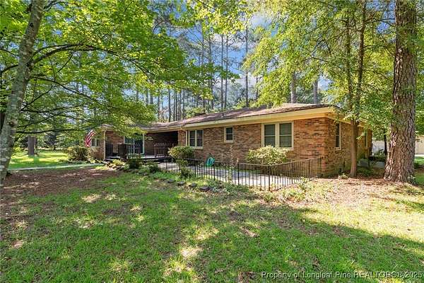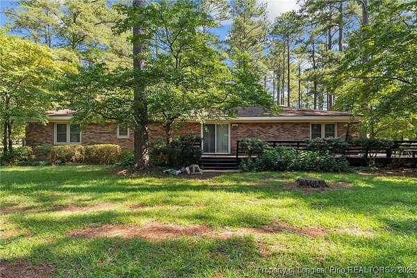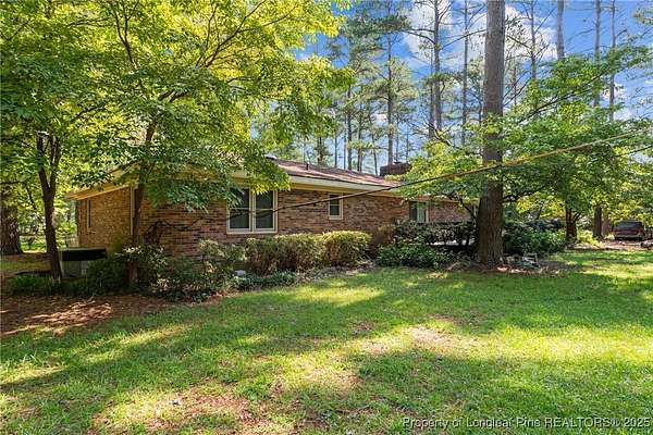 Current contract is contingent upon the sale of the buyer's home-seller is accepting backup offers. Welcome to 5945 Muscat Road, a spacious all-brick ranch-style home nestled on approximately 4.5 acres of level land in Hope Mills. This well-maintained property offers over 2,500 square feet of living space, featuring three generously sized bedrooms, two full bathrooms, and multiple flexible living areas including a formal living room with a wood-burning fireplace and a separate dining space. The layout is ideal for both everyday living and entertaining, with large windows that provide ample natural light and views of the peaceful surroundings. The kitchen includes plenty of cabinet storage and counter space, and the adjoining areas offer great flow for hosting or family time. A two-car dettached garage and extended driveway provide plenty of parking and utility. Outside, the expansive lot offers endless possibilities-whether you're envisioning a garden, workshop, recreational space, or simply room to roam. With its solid brick construction, classic charm, and rare combination of interior space and outdoor acreage, this home provides the perfect blend of comfort and potential for future customization.