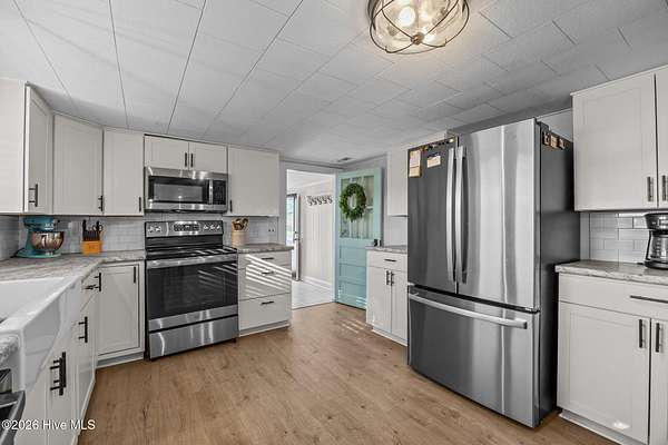 Experience country living at 5947 Elks Road, a 3-bedroom, 2-bathroom home set on 4.1 versatile acres outside of Grimesland. This 1,508 sq ft residence, built in 1940, has been significantly updated by its current owners. Enjoy a fully renovated kitchen, laundry room, and a remodeled bathroom. Modern updates extend throughout the home, with new flooring in main living areas, new windows, exterior doors, light fixtures, an entirely new HVAC system, and a new roof, ensuring contemporary comfort. The 4.1 acres are a truly exceptional feature, offering remarkable utility and versatility. The land consists of 3 parcels which includes a spacious home lot with a charming yard and plenty of road frontage. Behind the home are 2 more parcels consisting of about 3 acres of level, well-drained land that is cleared with the exception of a stately mature oak tree. This area presents ample opportunities for gardening, raising a small farm or raising livestock, or even potentially developing. Beyond this is an additional roughly half-acre of wooded land that has recently been cleared of undergrowth to provide additional utility and enjoyment. For storage and hobbies, find an attached 2-car garage, a detached 2-car garage/workshop (37'x28'), a separate storage shed (10'x12'), and a detached carport (18'x29').. This property delivers quiet country living with easy access to amenities, just 15 minutes from Greenville and 5 minutes from Chocowinity. It's a compelling option for those desiring space, modern updates, and a tranquil environment.
