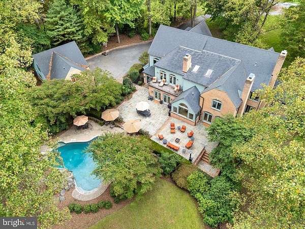 Elegant Georgian Revival Estate with Pool, Elevator, ADU & Five-Car Garage! Experience timeless elegance in this Georgian Revival estate offering over 11,000 square feet of gross living area, with 5 bedrooms, 7.1 baths, and 6 fireplaces. Every space has been thoughtfully designed to combine classic architecture with modern luxury. The home is introduced by a park-like setting with expansive grounds, mature landscaping, and the shadows of tall trees. Its brick front elevation is enhanced by keystone accents above the windows, brick walkways leading to the entrance, a slate-style roof, and traditional copper half-round gutters with round downspouts. At the rear, a private gated brick walkway leads to a landscaped courtyard with a bluestone patio, a decorative balcony overlooking the gardens, and a striking combination of brick and painted wood siding that adds character and dimension. Inside, a dramatic imperial double staircase with a chandelier centerpiece makes a grand first impression. The main level offers a private in-law suite, while the primary bedroom overlooks the pool and opens to its own balcony with a fireplace. Each bedroom is served by its own full bath, ensuring comfort and privacy. The gourmet kitchen is equipped with KitchenAid appliances installed in 2013, including a five-burner gas cooktop, three wall ovens, and a built-in refrigerator. A residential elevator provides convenience and accessibility throughout all levels. The lower level is designed for entertaining, featuring an exercise room, a spacious recreation room with a kitchenette, a den, storage, and a full bath. Outdoor living is centered around the seller's favorite feature-a 44,000-gallon saltwater pool that is nine feet deep with a gunite finish, diving board, and waterfall. With complete wooded privacy, Rockcustic outdoor speakers, and the relaxing sound of the waterfall, this backyard feels like a private retreat. For car enthusiasts and those in need of flexible space, the property includes garage parking for five vehicles, with a two-car attached garage and a detached three-car garage with a finished accessory dwelling unit above, perfect for guests, a studio, or office space. This estate captures the best of both worlds-historic character and modern amenities-offering a lifestyle of comfort, luxury, and privacy in a truly park-like setting.