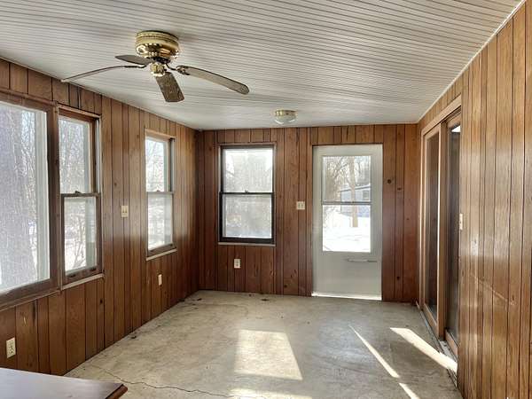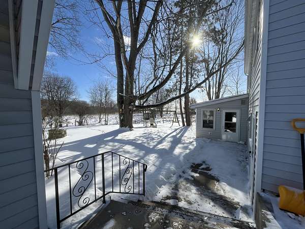 Est $1,232/moCountry setting yet close to town, with convenient access to the highway and Jackson Community College. This charming home features a spacious great room with cathedral ceilings, adjacent to the kitchen and a full bath. The main level offers two bedrooms with hardwood floors, a flexible living room, and a second large updated bathroom with ample storage and a low-threshold ceramic shower. A walk-up third bedroom provides additional living or flex space. Detached two-car garage includes a loft for extra storage. Enjoy the enclosed porch and separate brick patio overlooking the property. An older horse barn adds character and country charm. Two parcels combined for a total of 2.5 acres.