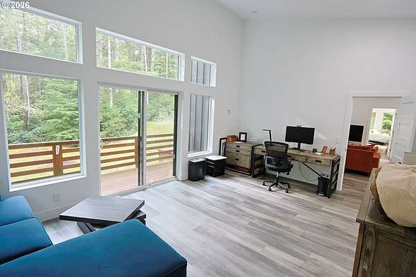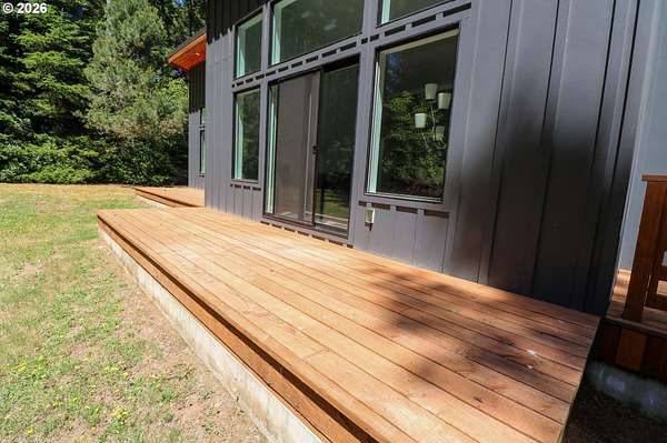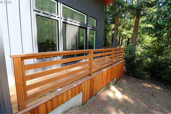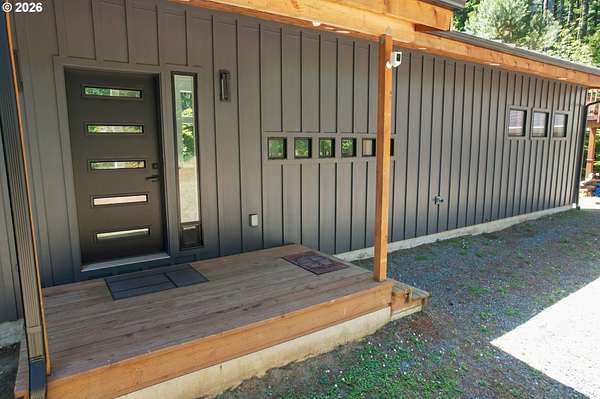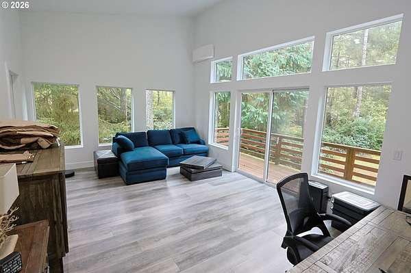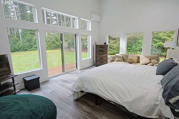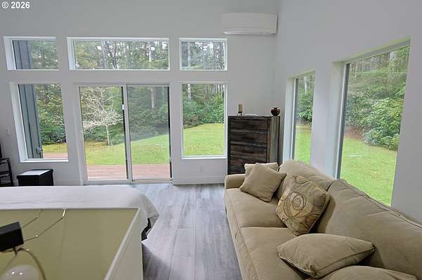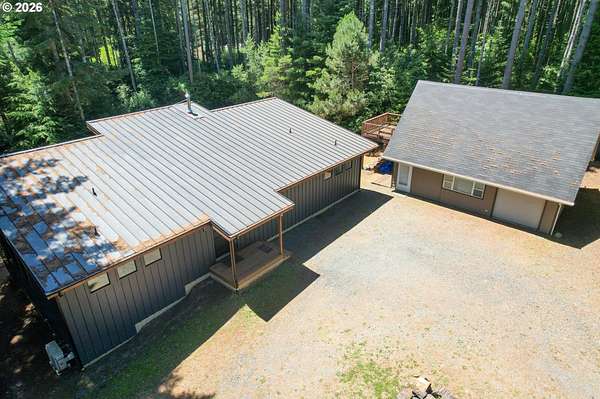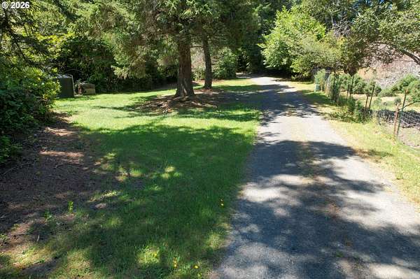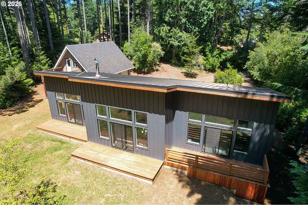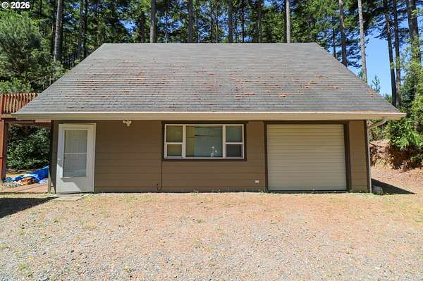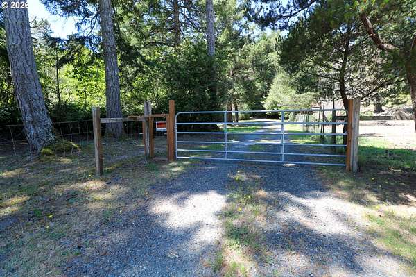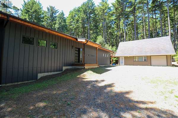 Tucked away in a highly desirable coastal location, this private wooded retreat offers the perfect blend of tranquility, recreation, and opportunity. Situated on nearly 3 acres behind a gated driveway, the property invites you to bring your vision-whether that's expanding, creating a hobby farm, or even bringing a horse and enjoying unforgettable rides to the beach just a half mile away. The home features two spacious primary suites, each with its own bathroom, offering flexibility and comfort for guests or multi-generational living. The open-concept living and kitchen areas are filled with natural light, showcasing views of the woods and trees and natural light through large windows and sliding doors that lead to decks accessible from nearly every room-perfect for embracing indoor-outdoor living. Thoughtfully equipped with stainless steel appliances, ductless heat pumps for efficient heating and cooling, and a large sealed crawl space, this home is designed for year-round comfort and energy efficiency. Outside, you'll find a detached garage with additional storage or recreation space with potential for creative use. Ideally located approximately 4 miles from the world-renowned Bandon Dunes Golf Resort and less than half a mile to public beach access, this property is a rare opportunity to own a slice of the Southern Oregon Coast lifestyle.