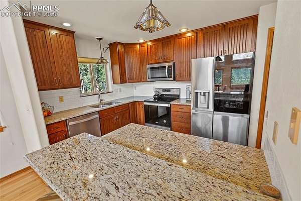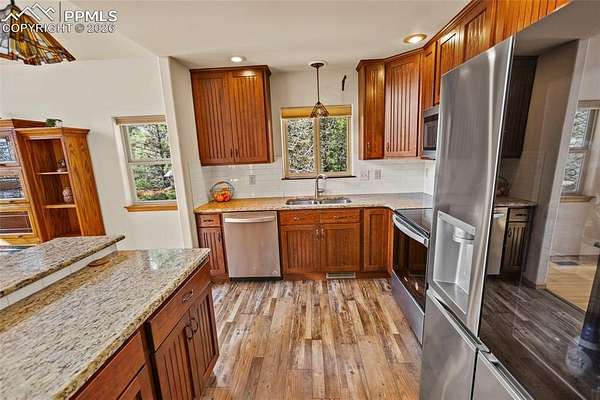 Experience the Pinnacle of Mountain Living at Bird Point - Nestled on 3.3 pristine acres, this 2,782 sq. ft. mountain retreat offers the perfect blend of rustic serenity and modern convenience. From the moment you enter the vaulted main level, a stunning wall of windows frames a "million-dollar view" of Crystal Peak, bringing the beauty of the Rocky Mountains directly into your living room. Chef-Inspired Kitchen & Elegant Living - The heart of the home features a refreshed kitchen (2023) boasting luxury vinyl flooring, granite countertops, dual pantries, and a full suite of new appliances. The adjacent dining area provides seamless walk-out access to the front deck, perfect for morning coffee under the shade of the aspen trees. The upper-level master suite is a private sanctuary with vaulted ceilings, a jetted tub, and a dedicated 7x16 office space-ideal for remote work in a peaceful setting. Entertainer's Dream Lower Level - The expansive 25x29 walk-out family room is designed for gatherings, featuring a wet bar and direct access to the lower-level patio. After a day of exploring, retreat to the 2023-installed hot tub to watch the sunset over the national forest. Exceptional Upgrades & Outdoor Amenities - This property is a hobbyist's paradise, featuring a 3-car insulated garage with custom shelving, a greenhouse, and three storage sheds (one fully insulated and drywalled). For the adventurer, there is a dedicated RV pad with 30-amp electrical service. Recent high-value upgrades include new carpeting (2020), a professional deck cover, and freshly sealed decking (2025). Location & Lifestyle - Located just minutes from world-class lake and stream fishing and the Pike National Forest trail system, this home offers unparalleled access to nature. Whether you're enjoying the summer wildflowers or the friendly community atmosphere, Bird Point is more than a home-it's a lifestyle.
