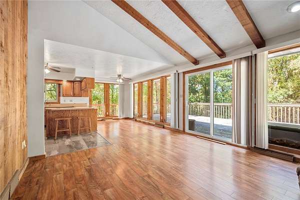 Welcome to 595 Euclid Road! Set on over 5 picturesque acres with a governor's drive and walls of windows, this expansive ranch-style residence offers the perfect canvas for refinement and personalization. The home features three bedrooms and 2.5 baths, a warm and inviting family room with striking stone fireplace that opens to an L-shaped deck, ideal for relaxing or gatherings. Additional flex room with cathedral ceilings would make a great office or sitting area. The kitchen includes all appliances while the finished game room adds versatility for leisure or hosting. First floor laundry is a definite plus! A two car attached garage, oversized one car garage plus additional carport provide exceptional convenience and space for multiple vehicles or recreational needs. With its generous footprint, timeless design and prime setting, this property presents a rare opportunity to create a truly distinguished estate. Welcome home !