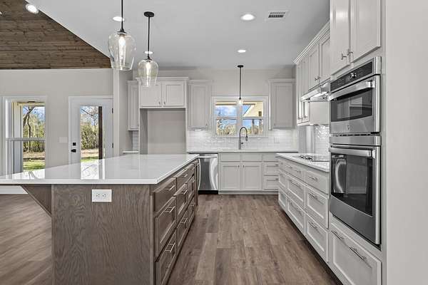 Nestled on 3.5-acres this newly built James Horton custom home is a masterpiece of craftsmanship and attention to detail. This home features hardy-plank siding, large porches to enjoy the views, and a 30-year composition shingle roof. Through the foyer, the open-concept living and kitchen are perfect for entertaining. The kitchen boasts a large quartz island, brand new GE stainless appliances, custom cabinets, and a tile backsplash. There is a nice dining area just off the kitchen, and an office just off the living area. The primary bedroom features vaulted wood ceilings, a private bathroom with quartz countertops, walk-in shower, standalone tub, and spacious walk-in closet. Across the home, two guest bedrooms share a hall bath with quartz countertops and a shower/tub combo. This home features luxury vinyl plank throughout, low e windows, led lighting, and more! Outside, you will appreciate the propane hookup for your grill and the two-car carport. Call today!
