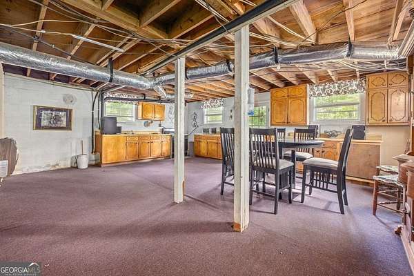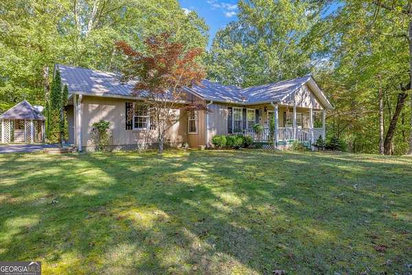Private, secluded, acreage, and spacious yard with fruit trees surrounding the home. This home is full of potential and there is definitely room to expand! This well-maintained 3-bedroom, 3-bathroom ranch-style home sits on over 5.5 acres of peaceful countryside and has so much to offer. The main level features a spacious primary suite with ensuite bath, two additional bedrooms, a full bathroom, separate dining room with an antique wood burning stove, a large kitchen with pantry, a generous family room, and a convenient main-level laundry room. Downstairs, the partially finished full basement includes a kitchenette, a separate entrance, a partially completed bathroom, and space for an additional bedroom-ideal for a guest suite, rental opportunity, or multi-generational living. You'll also enjoy abundant storage throughout, a large yard perfect for outdoor activities, a covered front porch facing a large Hemlock tree, and a sturdy back deck for relaxing or entertaining. Plus, there's a powered barn ready for hobbies, storage, or a workshop. With privacy, space, and room to make it your own, this property is a rare find with endless possibilities centered between Cleveland & Helen.