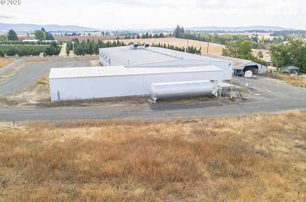 Est $17,750/moRare opportunity with 150 acres near Dallas, minutes from Hwy 22. Includes 136+/- tillable acres of productive soils, a 2,000+/- sq. ft. home, and a 24,000+/- sq. ft. processing facility with 3-phase power, compressed air, liquid nitrogen ports, drainage, offices, and truck bays. Endless potential for farming, agribusiness, or value-added processing in a prime Willamette Valley location. The replacement cost of the facility is more than the asking price of the entire property.