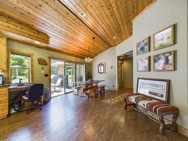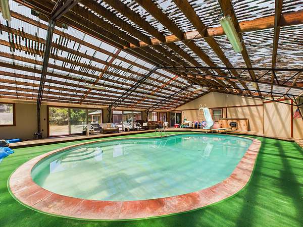 Come see this beautifully remodeled farmhouse situated in a private setting of the quaint town of Carlotta, CA. With 20 acres zoned agricultural and residential, this home is prime for equestrian lovers and nature lovers alike. The property's vast meadow borders the river, while the partially fenced arena could house your horses. The home boasts 3 bedrooms and 3.5 bathrooms, with the primary including heated bathroom floors. The knotty alder vaulted ceilings highlight the home, and the remodeled kitchen with rough-edged granite counters gives that country feeling. Trex Deck adorns the backyard, while a heated indoor pool will make any party a big hit. Hunter Douglas blinds throughout the home will keep it cool in the summertime, and solar lighting brings the heat in the winter months, along with a gas stove. Laminate hardwood floors accentuate the rustic cabin feel in the downstairs great room and bedrooms, with an attached garage entryway right into the home, giving easy access. Additional farmhouse features include a detached workshop/shed for all your DIY projects and plenty of room with an RV pad/hookup or boat parking. The property is also conveniently located near hiking trails, fishing spots, and camping areas. Don't miss out on this incredible opportunity to own a piece of paradise in Carlotta. Schedule a showing today and envision the endless possibilities for this beautiful farmhouse in the redwoods.