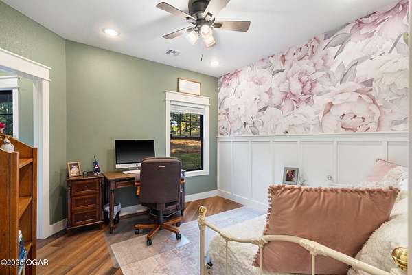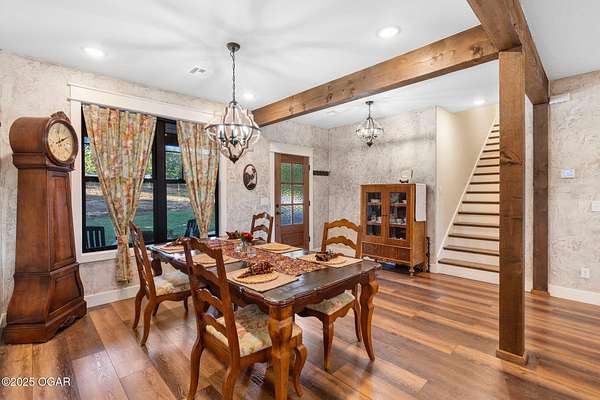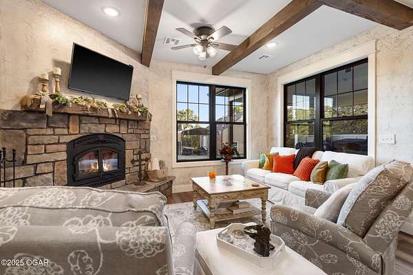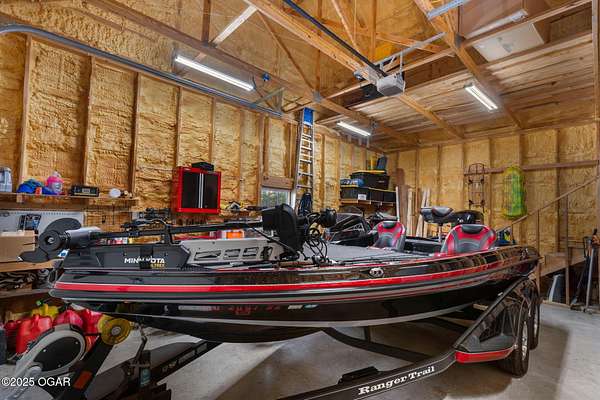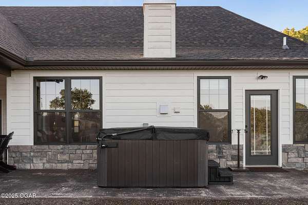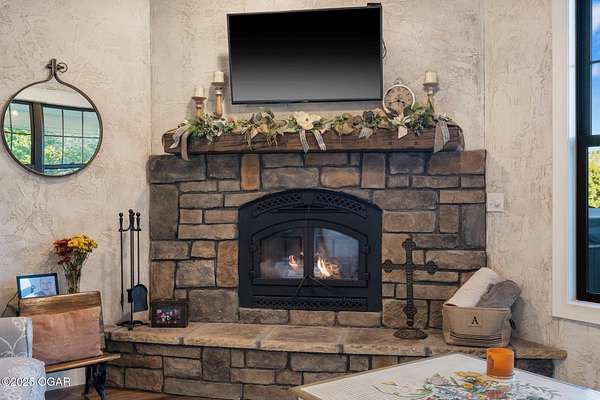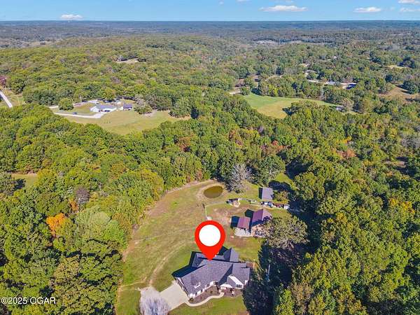 Welcome to your private retreat in the Ozarks! Situated on 8.7 beautiful acres just 10-15 minutes from the Arkansas state line, this property offers the ideal setup for a hobby farm or multi-use estate. The main home features 4 bedrooms, 3 baths, and over 2,900 sqft with an inviting open layout, vaulted ceilings with beams, and a cozy hearth room with a wood-burning fireplace. The kitchen is complete with granite counters, GE Profile appliances, a 5-burner gas range, double oven, and a large walk-in pantry. The primary suite is a true retreat with a soaking tub, double shower heads, and a custom dressing closet with built-in vanity. Additional features include a bonus/game room, safe room, storm shelter, generator hookup, and fiber internet. Outside, enjoy a covered patio with a hot tub (to convey), an electric gated entry, and a 30x40 insulated shop/guest quarters with a full kitchen, bathroom, mini-split, wood stove, and covered RV parking. The land is already set up for your hobby farm with fenced pastures, a pond, lean-to barn, greenhouse, chicken coop, and raised garden beds. A tractor will convey to make maintaining the property easy. This peaceful setting offers the best of country living with quick access to town-less than 30 minutes to Rogers and just 20 minutes to Bentonville.