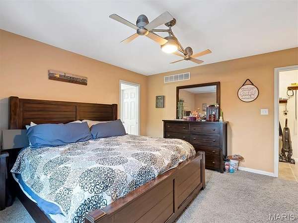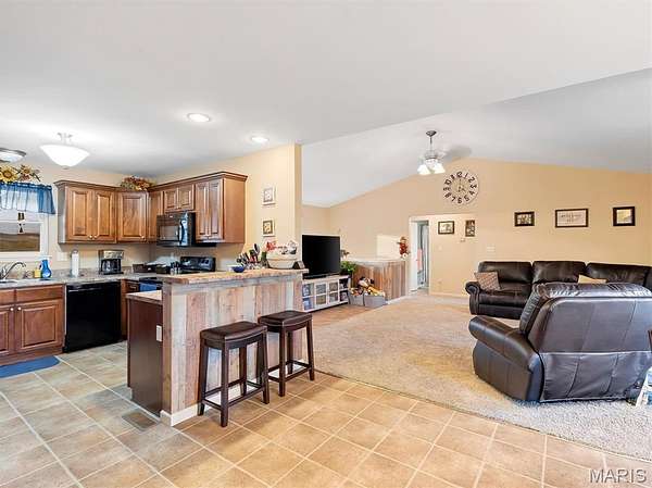 Step inside to the vaulted ceiling living room and open-concept floor plan designed to feel both spacious and welcoming. The main living area flows seamlessly from the kitchen to the dining and living spaces, making daily living and entertaining effortless. Natural light floods the bay window dining area creating a cozy atmosphere and functional living. The beautiful kitchen features oak wood cabinetry, ample counter space, and a functional eat-in peninsula ideal for cooking and gathering. The main level also includes 2 comfortable and cozy bedrooms, main hall bath and main level laundry room. The spacious and thoughtfully designed primary bedroom features a generous walk in closet and primary bathroom that highlights a double vanity, shower and soaker tub.