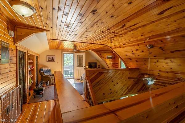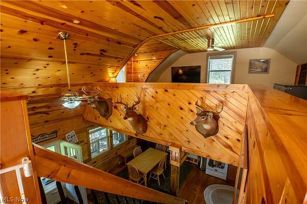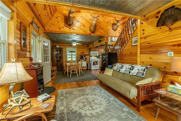 Escape to your own private retreat with this charming cabin nestled on 28 picturesque acres of wooded land. Surrounded by towering trees, abundant wildlife, this property offers peace, privacy, and a true connection to nature. The cozy cabin features 2 loft area bedrooms and 2 full bathrooms. The spacious open living area has knotty pine walls with warm wood finishes. Enter the covered porch providing a relaxing spot to enjoy your morning coffee or evening sunsets. The land is a mixture of trees and open clearing with a stream and paths all ideal for hiking, hunting, four wheeling or simply enjoying the outdoors. Whether you're looking for a weekend getaway, or a short term rental investment this unique property delivers a rare combination of comfort and country charm. Additional features include an outbuilding and a small 12x12 cabin, and road frontage. The perfect place for making memories.
