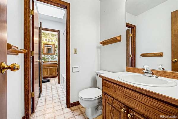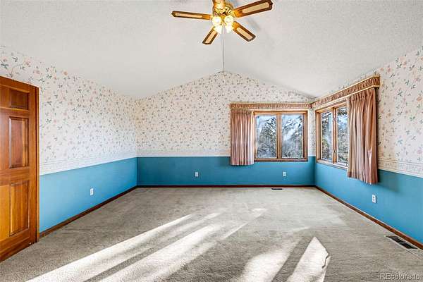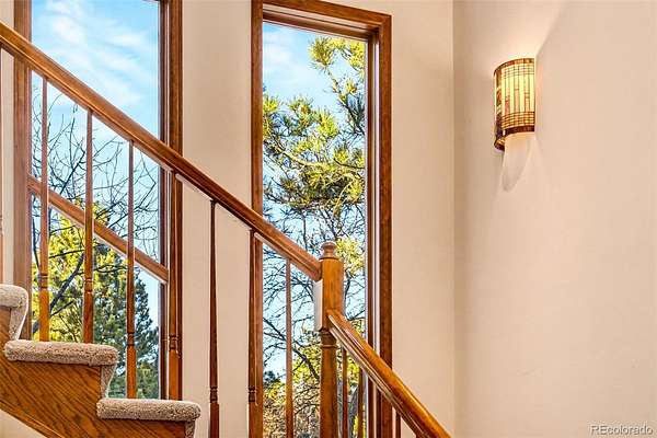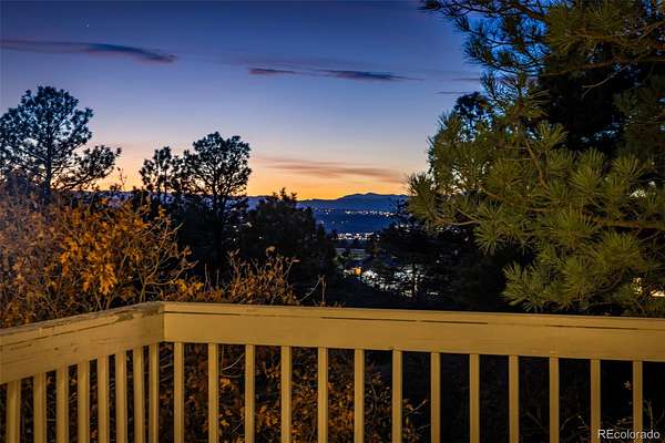 Ideal for investors or buyers seeking a substantial renovation opportunity, this property offers strong upside potential in a highly desirable acreage setting. This one owner residence sits on 2.3 acres of naturally open meadow with privacy that defines why people choose this area. Wildlife is part of daily life here, with frequent sightings of deer and wild turkey. Solid oak floors extend through the main level where the kitchen opens to an eat in area with direct access to 1 of 2 elevated decks and flows into the living room anchored by a brick fireplace. A formal dining room features built in cabinetry with custom Feather River glass, part of a coordinated design element that began at the entry door and continues through the upstairs library, den built-ins, and the kitchen. The den includes a painted masonry fireplace and access to the second deck, creating another distinct gathering space, while a main level bedroom with bath supports guests or flexible living. Upstairs, the primary suite captures distant Pikes Peak views from the left side of the home and includes a jetted tub, separate shower, and large walk in closet, while 2 additional bedrooms share a Jack and Jill bath with individual toilet areas. The finished walkout level adds a large recreation space, freestanding wood stove, workshop, wine storage, additional bedroom and bath, brick flooring, and access to a covered patio. An attached 3 car garage offers storage, and the overall layout gives everyone room to spread out without feeling disconnected. Roof, decks, windows, and carpeting reflect age and will be addressed by the next owner. The wood flooring and core materials provide a strong starting point for personalization. Annual HOA dues are $150. Minutes to Bingham Lake Park, Legacy Equestrian Center, golf, and with convenient access to Denver for commuting, travel, and city amenities, this property offers land, space, and proximity without compromise.
