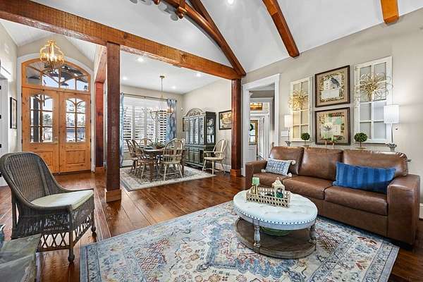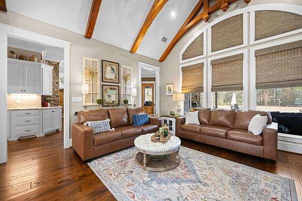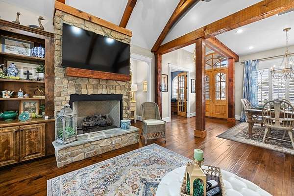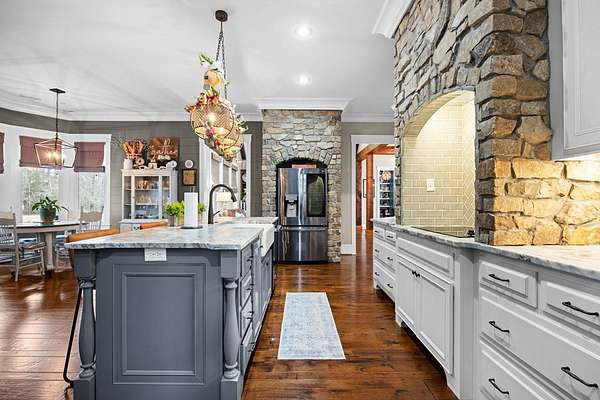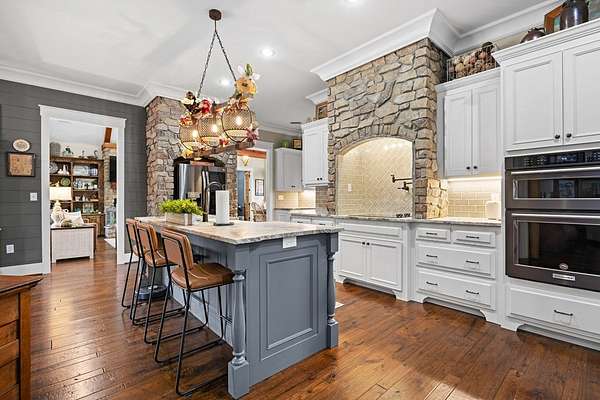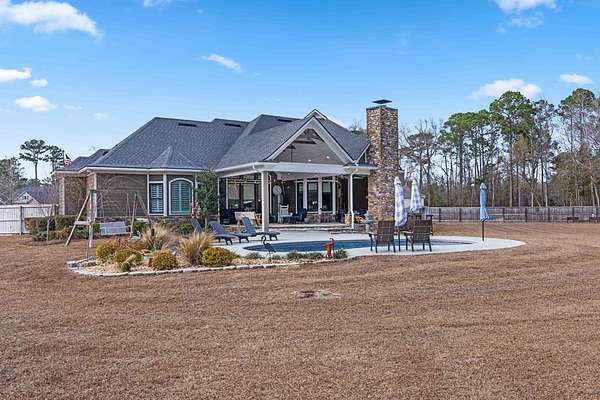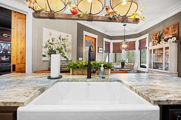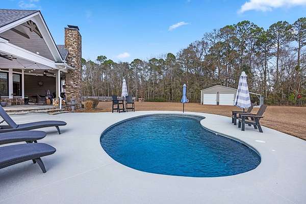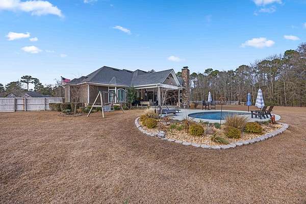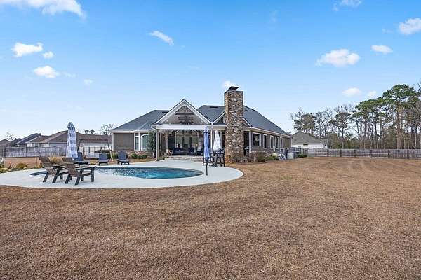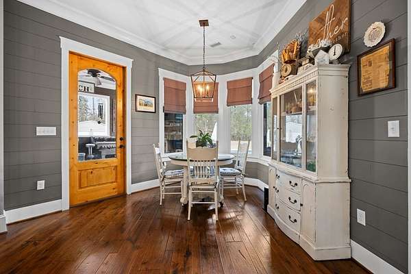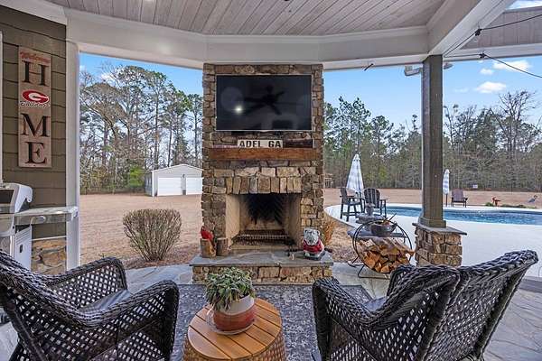This fabulous home checks all the boxes. Four bedrooms 3 1/2 bath. You can't beat the location or the fine finishes inside the home. A shady front porch with plenty of room for rocking chairs to enjoy the beautiful morning and evenings. A dynamic back porch to enjoy the fenced in yard, saltwater pool, and privacy with no neighbors. Step into your own private outdoor retreat! This home features a stunning covered back porch complete with an outdoor kitchen, perfect for entertaining year-round. Enjoy quiet evenings by the beautiful separate fireplace or unwind in the additional private sitting area designed for relaxation and privacy. A detached double garage with workshop space adds incredible versatility for hobbies, storage, or projects. This property truly offers the best of indoor-outdoor living. As you enter the home, the foyer with exposed beams, dining room, and living room combination fireplace built-in wall unit. Continue on into the delightful kitchen with granite countertops all the nooks and crannies you would want to have a perfect kitchen and for effortless food prep. And did I mention there is a sperate den off the kitchen! A wonderful breakfast room overlooking the back porch and saltwater pool. Master bedroom is very private and has an exquisite bath with his and her sinks double entry shower double closet. The other side of the home has two bedrooms, one full bath. One large walk-in pantry, half bath for guest, and a landing when you come inside off the garage area. Upstairs is the fourth bedroom. The third bath for children or guests. I think you'll find everything you need here in this mini plantation.