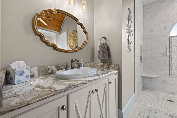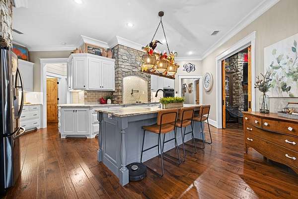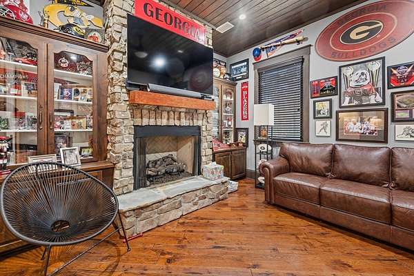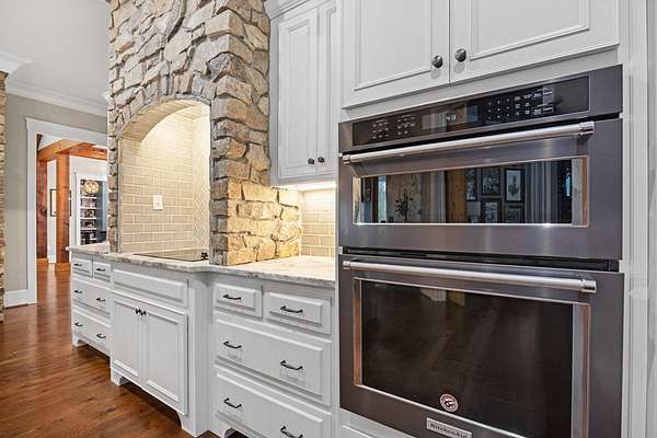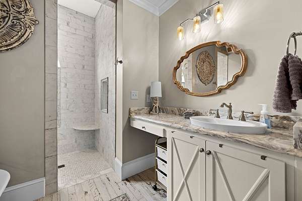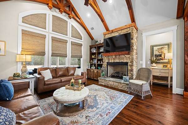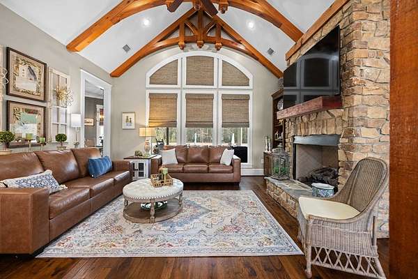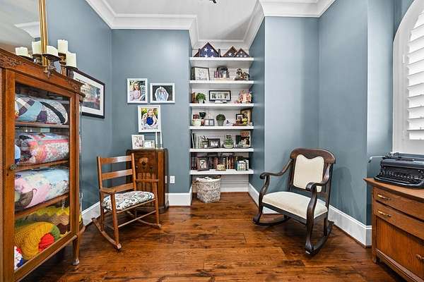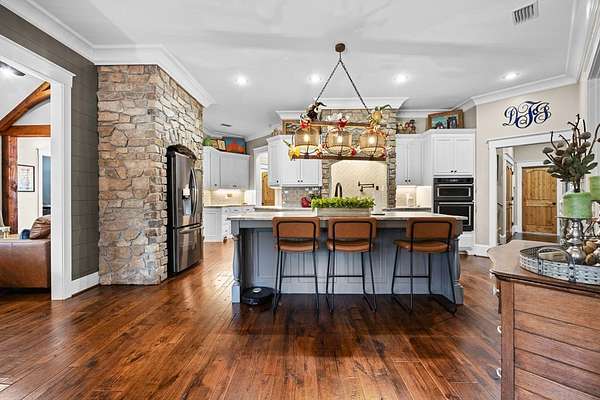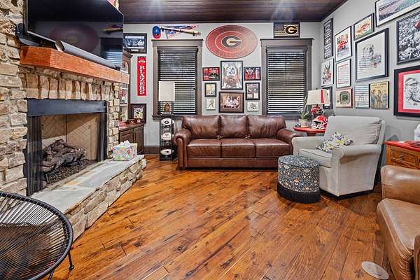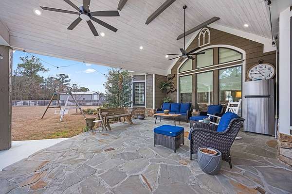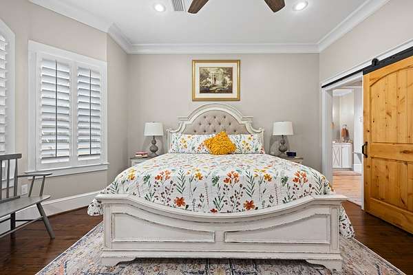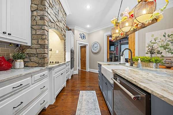 This fabulous home checks all the boxes. Four bedrooms 3 1/2 bath. You can't beat the location or the fine finishes inside the home. A shady front porch with plenty of room for rocking chairs to enjoy the beautiful morning and evenings. A dynamic back porch to enjoy the fenced in yard, saltwater pool, and privacy with no neighbors. Step into your own private outdoor retreat! This home features a stunning covered back porch complete with an outdoor kitchen, perfect for entertaining year-round. Enjoy quiet evenings by the beautiful separate fireplace or unwind in the additional private sitting area designed for relaxation and privacy. A detached double garage with workshop space adds incredible versatility for hobbies, storage, or projects. This property truly offers the best of indoor-outdoor living. As you enter the home, the foyer with exposed beams, dining room, and living room combination fireplace built-in wall unit. Continue on into the delightful kitchen with granite countertops all the nooks and crannies you would want to have a perfect kitchen and for effortless food prep. And did I mention there is a sperate den off the kitchen! A wonderful breakfast room overlooking the back porch and saltwater pool. Master bedroom is very private and has an exquisite bath with his and her sinks double entry shower double closet. The other side of the home has two bedrooms, one full bath. One large walk-in pantry, half bath for guest, and a landing when you come inside off the garage area. Upstairs is the fourth bedroom. The third bath for children or guests. I think you'll find everything you need here in this mini plantation.