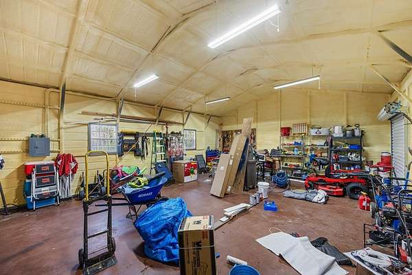 - Blinds, Ceiling Fan(s), Draperies, Fireplace, Garage Door Opener