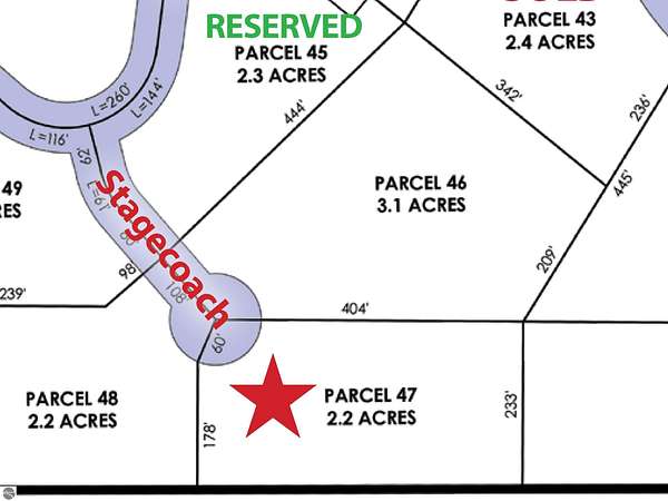 5956 Stagecoach Rd. Kingsley, MI 49649 From Traverse City, take Garfield Road (South) Turn left (East) onto Voice Road. Proceed 1 mile, turn right (South) onto Summit City Rd. to Paradise Ranch, follow signs to lot 47.
