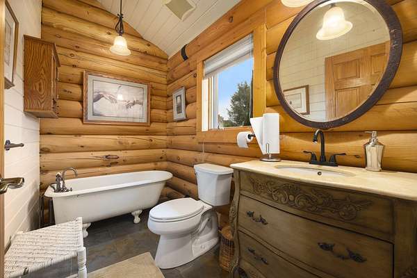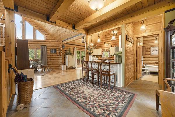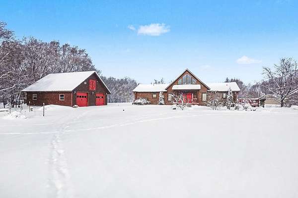 First time ever on the market and pride of ownership shows throughout. This open concept log home offers 3 large bedrooms and 3 full baths. Entire main level is Hickory or tile floors. Excellent workflow space in the kitchen, a large pantry and 2nd prep sink with counter space. Primary suite is 28x28 and also on the main level it features walk-in closet(w/window), huge handicap shower, slider exit to wrap around deck and a laundry room. Walkout doors to wraparound deck also from kitchen and 2 from family room. Loft area has natural light and excellent views. Covered front porch entrance with lots of entry space inside and out. Lower level could be mother-in-law suite or guest quarters with full kitchenette and ample living space. Two more bedrooms and two storage rooms. Plus stair landing area is enclosed storage space with custom made doors. Garage is 32x32, has a heated workshop w/ heavy doors and a 2nd level 12x32 bonus room with 2 dutch doors and a window.