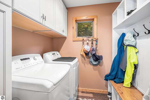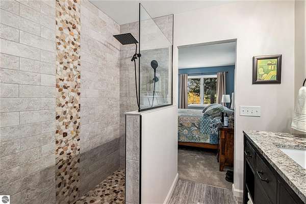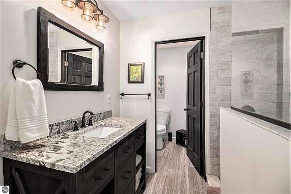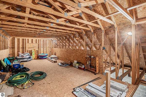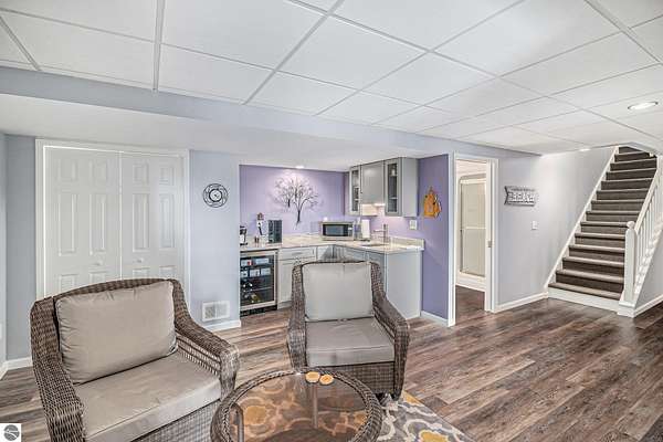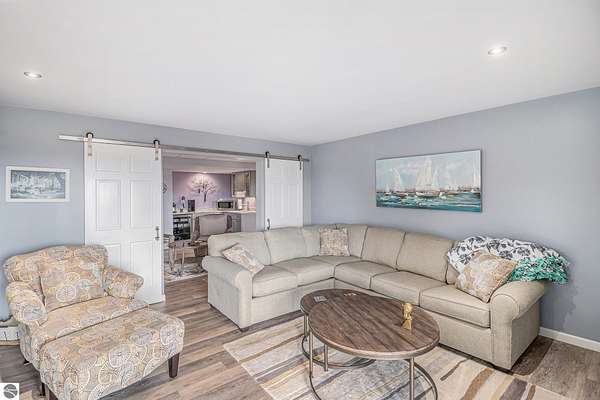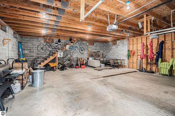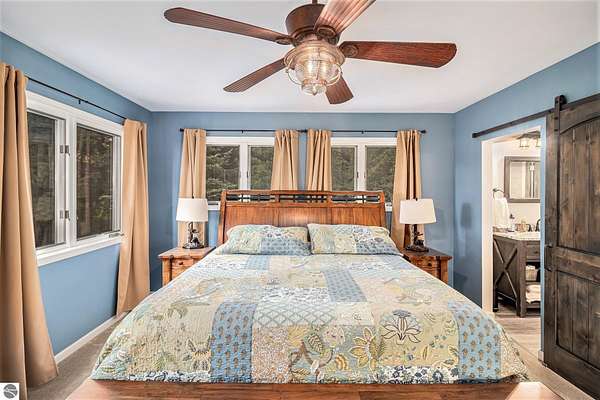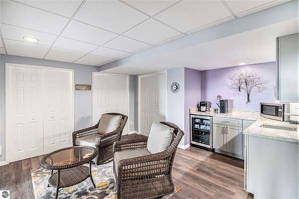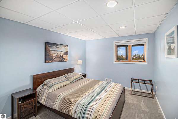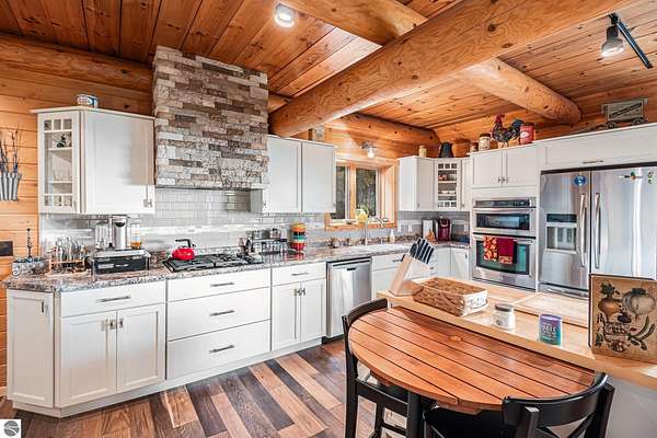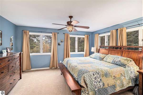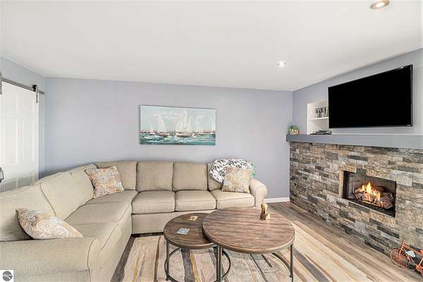 Enjoy breathtaking views of Lake Michigan from this stunning 3-bedroom, 3-bath home that perfectly blends warmth, character, and comfort. Rich wood accents and striking wood-beam ceilings create a timeless and inviting atmosphere throughout the open-concept living spaces. The living room features a beautiful fireplace framed by large windows that flood the home with natural light and capture the serene lake and wooded views. The kitchen is a chef's dream, showcasing granite countertops, stainless steel appliances, and plenty of space for entertaining. A spacious 3-season porch extends your living area, perfect for morning coffee or evening sunsets overlooking the water. The finished walk-out basement offers even more room to relax or host guests, complete with a cozy fireplace and a full wet bar. Step outside to the expansive deck, patio, or fire pit area surrounded by mature trees--ideal for outdoor gatherings or peaceful evenings by the lake. The large primary suite is a private retreat with a spa-like bath featuring an open walk-in shower and granite vanity. Additional highlights include a charming loft bedroom and a large detached garage with abundant storage.