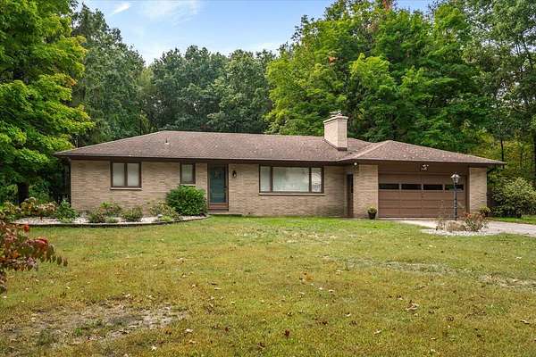Charming All-Brick Ranch on approx 6 Acres! This immaculate home offers the perfect blend of comfort, style, and country living. The spacious main floor features 3 bedrooms & 1.5 baths, highlighted by gorgeous hardwood floors & a beautifully remodeled bathrooms. The heart of the home is the stunning renovated kitchen, complete with granite counters, new stainless steel appliances, a large pantry, and an adjoining dining area. The formal living room shines with elegant cove ceilings and a cozy wood-burning fireplace, while the inviting family room opens to a light-filled 4-seasons room overlooking the private backyard. The full basement adds incredible potential for future living space and already includes a shower with plumbing for a second full bath. Recent updates provide peace of mind with new basement windows, a new well, fresh paint, new carpet, granite counters, & modern SS appliances. Outside, enjoy the property's natural beauty with wooded trails, plus a pole barn. or all your storage or hobby needs. A true move-in ready retreat with room to grow!