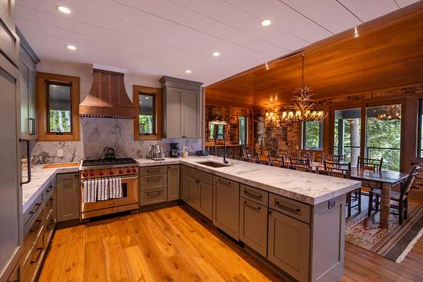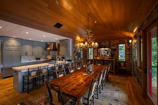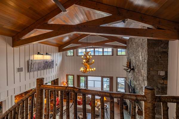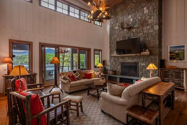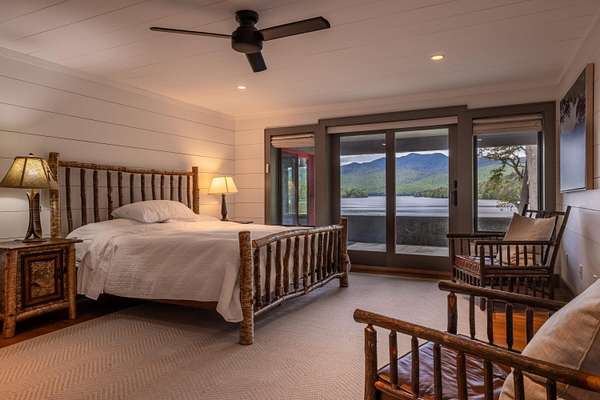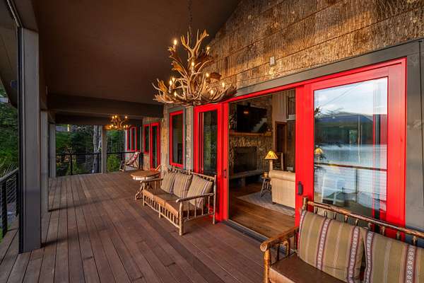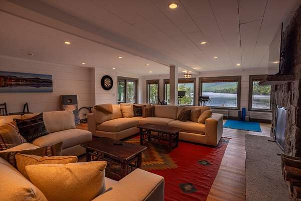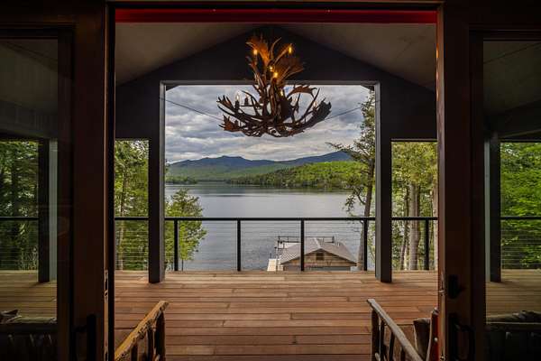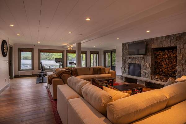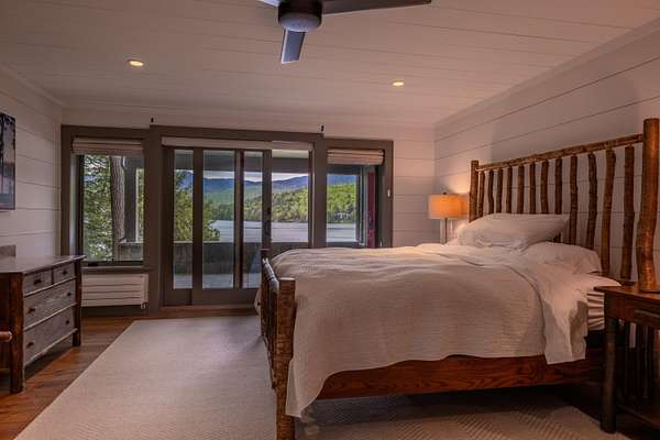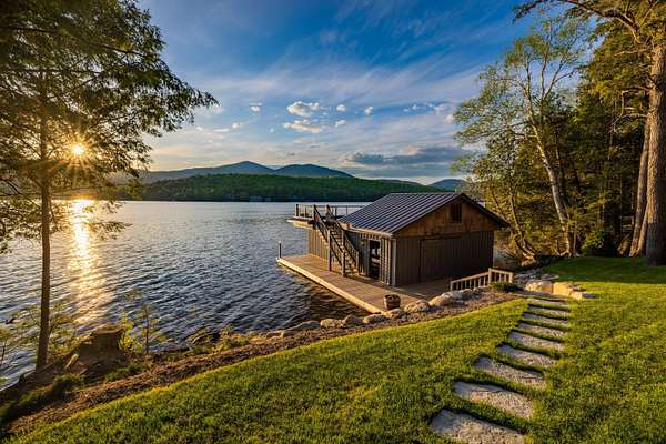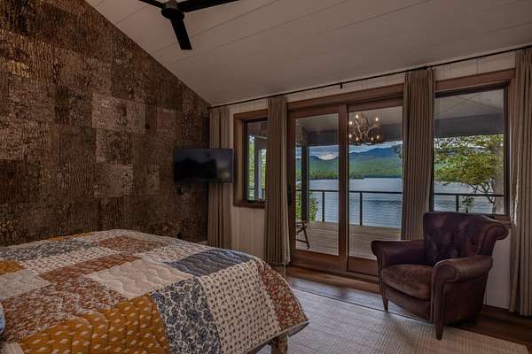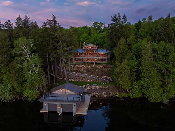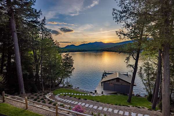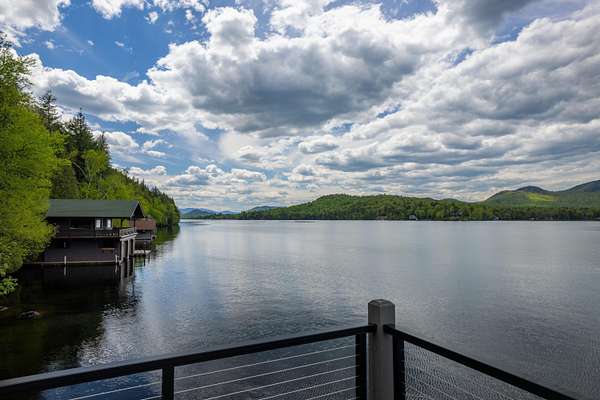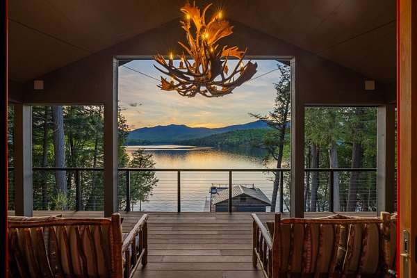Welcome to Antler Ridge - A Distinctive Waterfront Estate on Lake Placid Set on 1.5 private acres with 160 feet of shoreline, Antler Ridge is a newly reimagined lakefront sanctuary offering westward views over Shelter Strait and unforgettable sunsets behind the McKenzie Mountain Range. Accessible year-round via a quiet private road, this legacy property blends classic Adirondack architecture with modern comfort and luxury. Rebuilt in 2024 with meticulous attention to detail, the 5,450 sq ft home features five bedrooms, four and a half baths, and dramatic interior finishes, including vaulted ceilings with reclaimed beams, poplar bark siding from North Carolina, and handcrafted yellow birch railings. Expansive windows frame panoramic lake and mountain views, while a remote-controlled screen system transforms the 720 sq ft porch for any occasion. The open-concept great room flows into a chef's kitchen with premium appliances, custom cabinetry, and an oversized island perfect for gathering. The showpiece primary bath is clad in gemstone-style granite and features soaring ceilings and spa-level finishes. A spacious lakeside deck extends the living space outdoors, while the fully remodeled boathouse includes two covered slips and a stunning second-story deck-an ideal setting for enjoying Lake Placid's famous sunsets. Direct lake access offers four-season recreation right from your doorstep. Additional features include central air, a full-house generator, spray foam insulation, new mechanicals, a drilled well, buried propane tank, and updated septic system. Offered fully furnished, Antler Ridge is a rare turn-key estate in one of the Adirondack Park's most iconic waterfront locations.