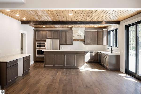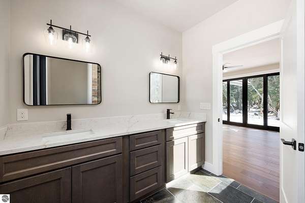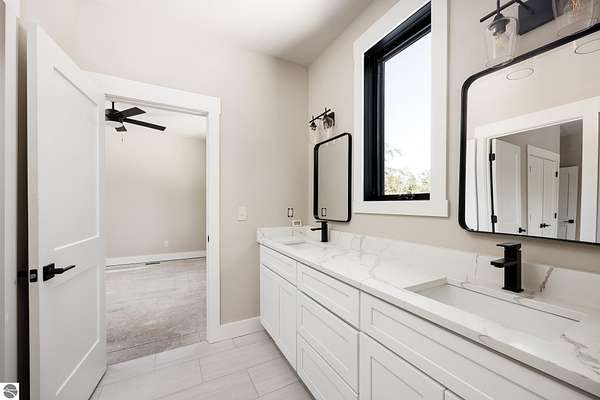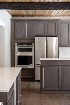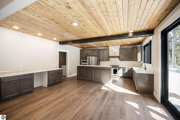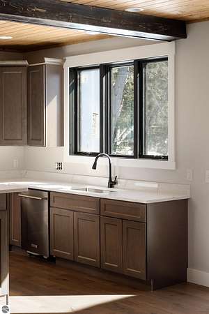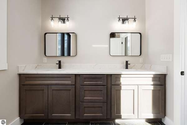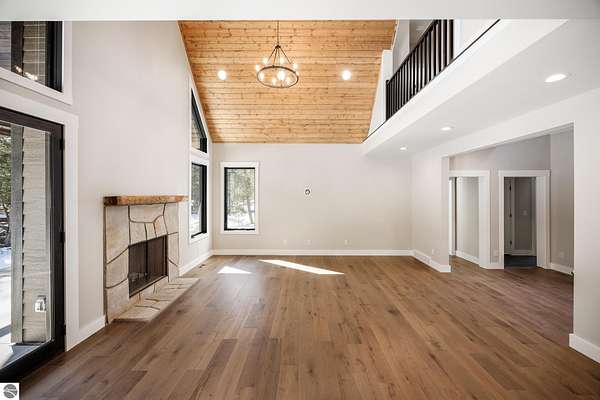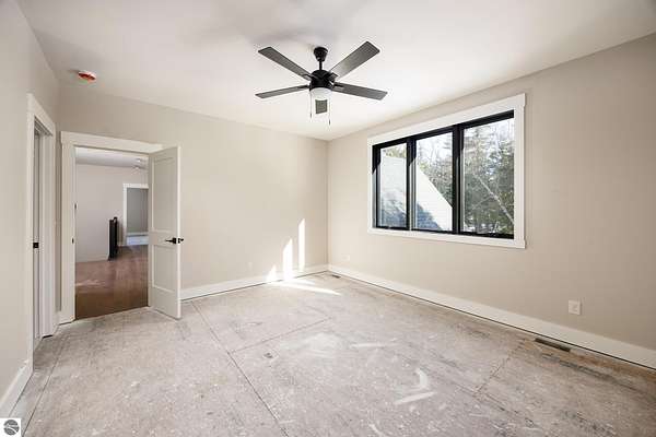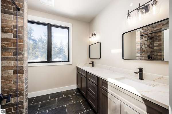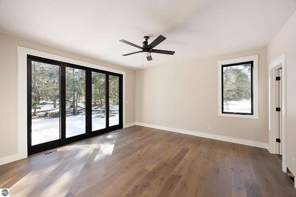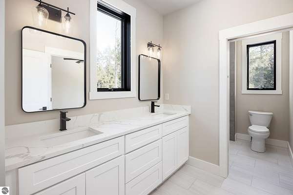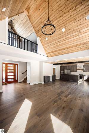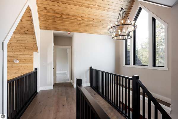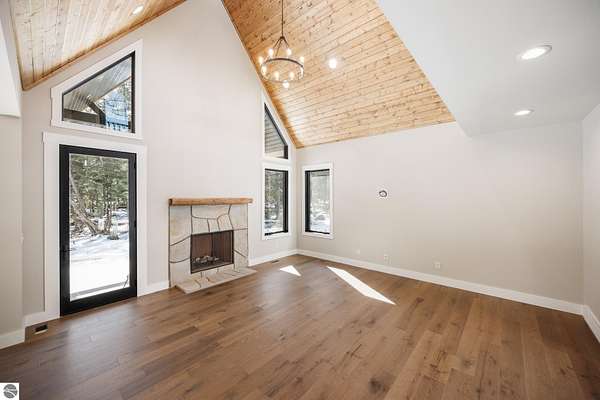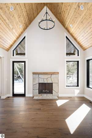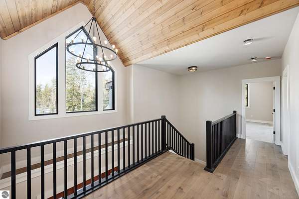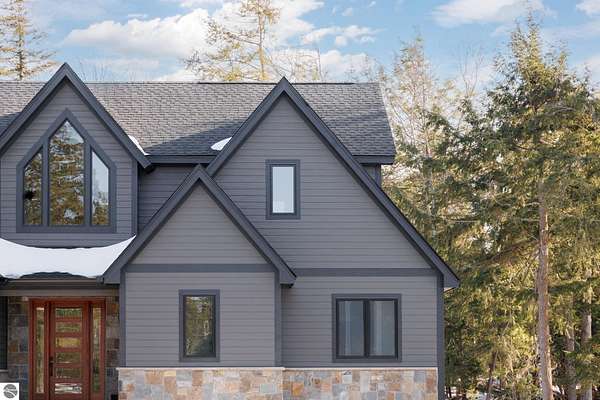 Brand new construction tucked into a beautiful 2.37 acre setting just a short walk from downtown Glen Arbor. This thoughtfully designed home features LP Smart Siding, freshly seeded and graded lawn, and striking modern finishes inside and out. Enjoy 9’ ceilings and composite hardwood flooring and Marvin windows that flows through the main living areas, creating a warm and welcoming space. The kitchen shines with custom maple cabinetry, quartz countertops, and a layout perfect for both everyday living and entertaining. All bathrooms offer tile floors, tile showers, and matching quartz counters for a cohesive, upscale feel. The main level boasts a spacious primary suite, plus a convenient laundry and mudroom just off the oversized two-car garage. Upstairs you’ll find a charming guest suite, two additional bedrooms, and the cutest Jack-and-Jill bathroom connecting the secondary rooms. With four bedrooms and four full baths (two on each level), there’s room for everyone. A 600 sq ft unfinished bonus room above the garage offers endless potential—home gym, studio, or extra storage.