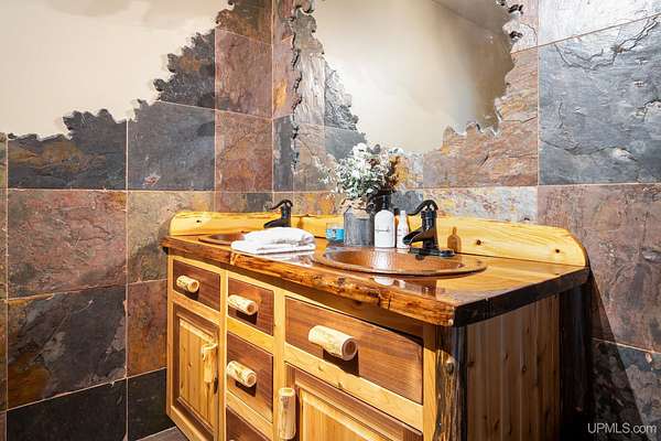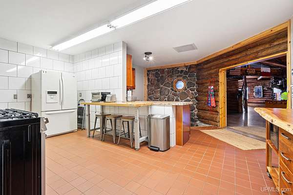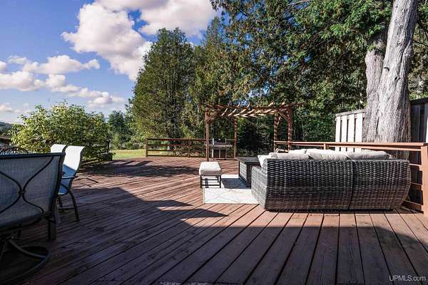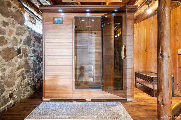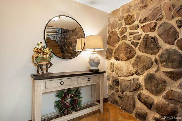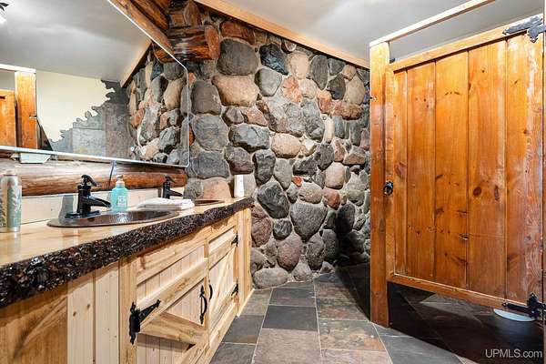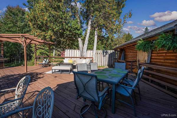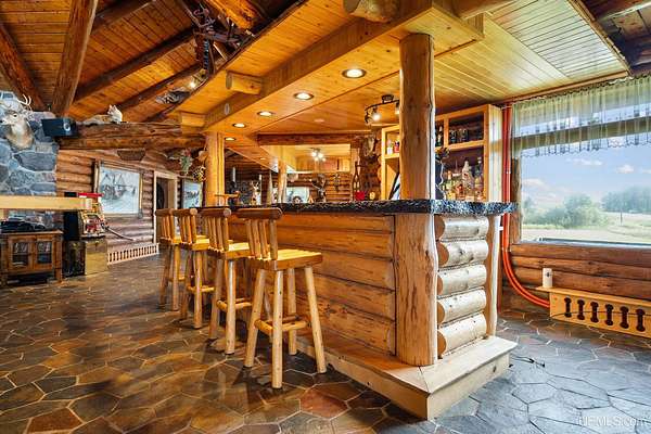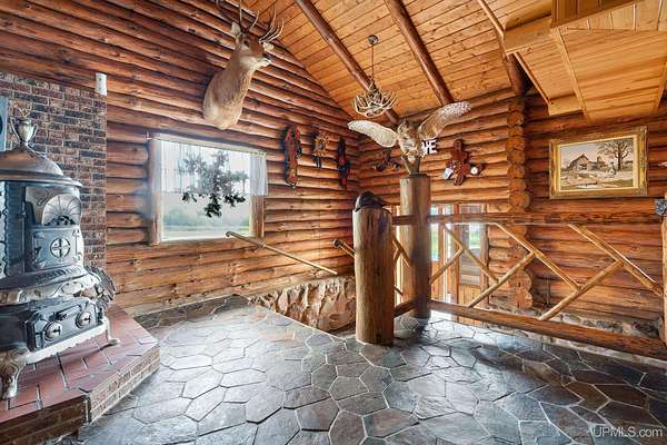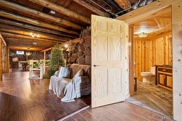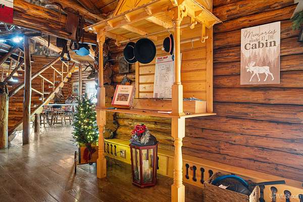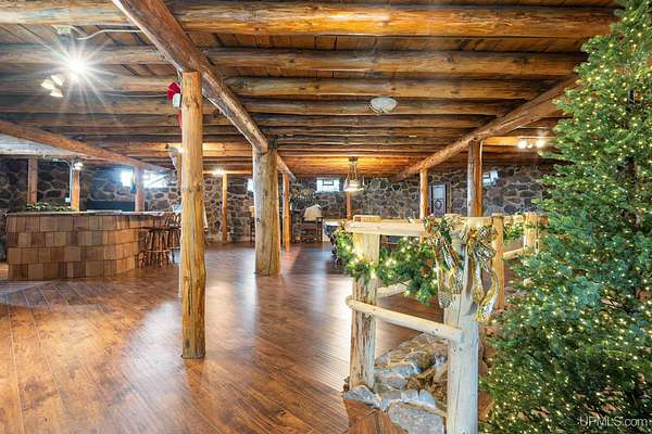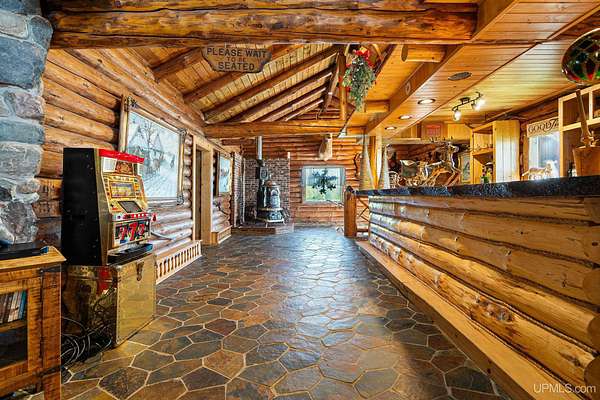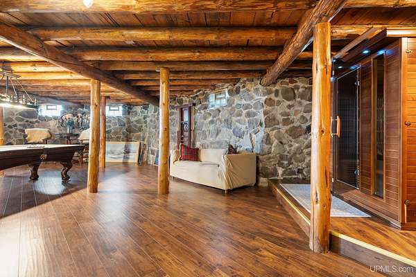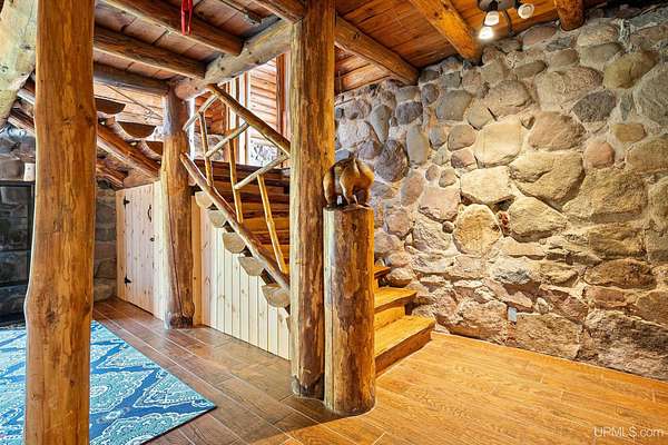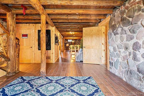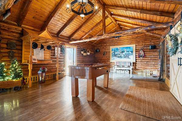 Incredible full log home with Acreage, Pond, and rental income with prime high traffic location! This 7000+ sq ft treasure is just waiting to be found. The renovations and improvements exceed the asking price. The unit also comes fully furnished with exquisite decor, wood carvings, and artwork. There are bars on both levels with a grand dining area on the main floor where you will find the massive stone fireplace. You'll also find a full kitchen and 2bathrooms. An impressive log staircase leads to the loft area overlooking the main floor. The lower level offers it's own fireplace ,another bar, sauna, and 3 bedrooms. The home has been a successful rental property for the last 2 years, but could be utilized as a restaurant, business, or whatever your imagination can dream. The highway location combined with the Acreage and proximity to ski hills, snowmobile and ORV trails, Lake Superior, world famous Copper Peak ski jump, and much more provide endless possibility. Come take a look at this unique gem before it's gone!