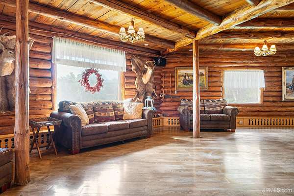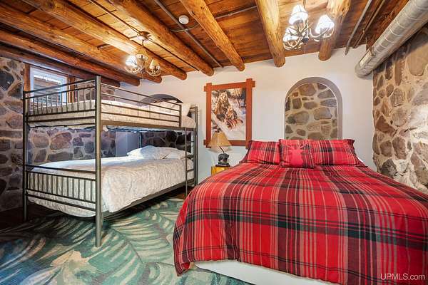 Incredible full log home with Acreage, Pond, rental income and prime high traffic location! This 7000+ sq ft treasure is just waiting to be found. The renovations and improvements exceed the asking price. The unit also comes fully furnished with exquisite decor, wood carvings, and artwork. There are bars on both levels with a grand dining area on the main floor where you will find the massive stone fireplace. You'll also find a full kitchen and 2 bathrooms. An impressive log staircase leads to the loft area overlooking the main floor. The lower level offers it's own fireplace, another bar, sauna, and 3 bedrooms. The home has been a successful rental property for the last 2 years, but could be utilized as a restaurant, business, or whatever your imagination can dream. The highway location combined with the Acreage and proximity to ski hills, snowmobile and ORV trails, Lake Superior, world famous Copper Peak Ski Jump, and much more provide endless possibility. Come take a look at this unique gem before it's gone!