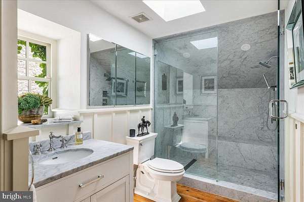 An extraordinary Solebury estate harbors more than three centuries of history, beauty, and preservation. First deeded in 1682 by William Penn to Nicholas Waln, the land remained untouched until 1713, when wheelwright John Skelton purchased it for forty-six pounds. By 1832, the Bucks County Intelligencer described it as "a splendid Bucks County farm," and nearly two centuries later it remains just that - an iconic farmstead where heritage, nature, and refined living converge. At the heart of The Farm stands a stately 1810 three-story stone farmhouse - an elegantly modernized 3,400 sq ft residence that retains vintage charm. With three bedrooms, five baths, five wood-burning fireplaces and darling front and rear porches, the farmhouse offers both intimacy and grandeur. Formal living and dining rooms are stylistically reimagined with a clean white palette, as pickled pumpkin-pine floors run throughout. A chic country kitchen delights with pastoral views, custom cabinetry, gourmet appliances, and a quartzite center island. The entire third floor is devoted to the Owner's Suite, showcasing a glass-enclosed designer closet and spa-inspired bath with walk-in rainshower and soaking tub. Additional highlights include a home office or massage room, lower-level parlour, and a European-style concrete pool just beyond the terrace-ideal for serene afternoons or lively summer gatherings. Three guest cottages add charm and versatility, each with individual personality. The 1811 Carriage House is a romantic one-bedroom retreat with full kitchen, exposed beams, and a spiral staircase. The Corn Crib Cottage, once used for farm storage, now offers an enchanting escape with an upscale kitchen, fireplace, lofted bedroom, deluxe bath, and courtyard with fire pit. The Lavender Cottage features two bedrooms, a designer kitchen, office, and fireplace-warmed living room, all overlooking wildflower and vegetable gardens. The historic stone barn is a one-of-a-kind masterpiece spanning 8,000 sq ft, with soaring ceilings and hand-hewn beams framing versatile entertainment spaces. Possible uses include a recording studio, fitness facility, cigar and billiards lounge, private dining, event venue, and more. Below, equestrian facilities provide 14 stalls, wash stalls, tack and feed rooms, and a manager's office. Outdoor amenities include a round pen, professional dressage and jumping arena with GGT footing, and sweeping fenced pastures. A restored Spring House - still cooled by running spring water - now stores wine, lavender oils, and seasonal harvests. Across 32 acres, lavender fields infuse the landscape with color and fragrance, particularly at twilight. Here, moments unfold both lively and serene: candlelit al-fresco meals in the barn courtyard, pygmy goats wandering nearby, or peaceful strolls through a lavender-lined meditation labyrinth. Perfectly situated, this haven lies just four miles from Doylestown Airport/Heliport, 14 miles from Trenton-Mercer Airport, and 60 miles from New York City. Nearby New Hope, Lambertville, Frenchtown, and Doylestown offer boutique shopping, creative dining, markets, galleries, and parks. Beyond just a home, The Farm is an enduring testament to time - it's a cherished inheritance that lasts generation after generation. This romantic Bucks County estate weaves tradition, artisanship, and the enchantment of bountiful lavender fields into a way of life that is truly unmatched. Her iconic beauty is a symphony of unparalleled luxury, a place where magic lives in the air and a locale not merely designed but destined to be treasured for years to come. (*Square footage and bedroom count is reflective of the main house and three guest cottages.)