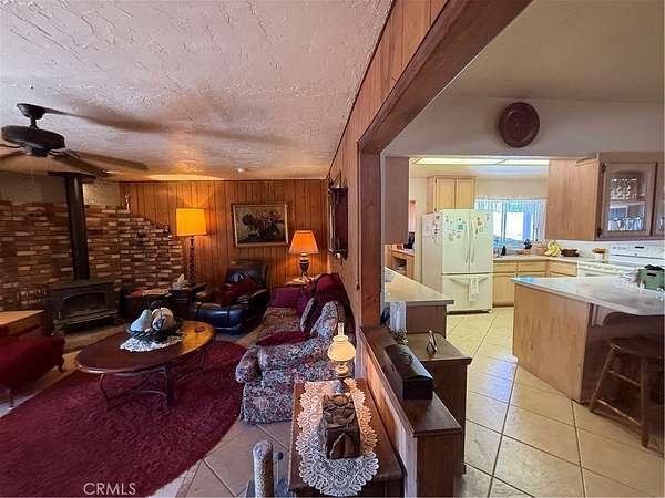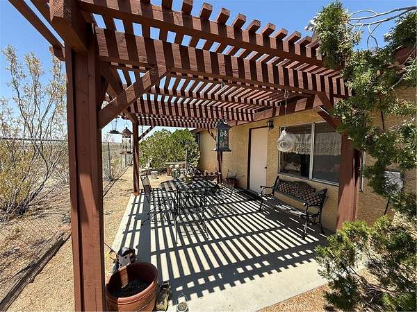This flowing ranch-style home features an updated wood-burning stove, creating a cozy, inviting atmosphere. Privately set yet conveniently close to town, you can take in the stunning surroundings from multiple spots -- whether you're relaxing on top of the hill overlooking the valley or enjoying the peaceful sitting area under the covered pergola next to the mini barn. There's plenty of room for expansion, and the property may offer potential for horses. A unique opportunity to enjoy serene desert living with endless possibilities!