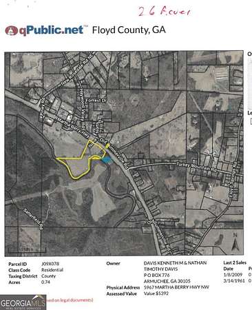 Est $1,496/mo26 acres just 8 miles north of Rome featuring 16 acres of open fields and 2,693 ft of frontage on Armuchee Creek-ideal for agricultural or recreational use. The property offers 821 ft of frontage on US Hwy 27 (Martha Berry Highway) and is zoned Agricultural/Residential. Mostly floodplain. Includes an old homesite on the tract. Call for more information.