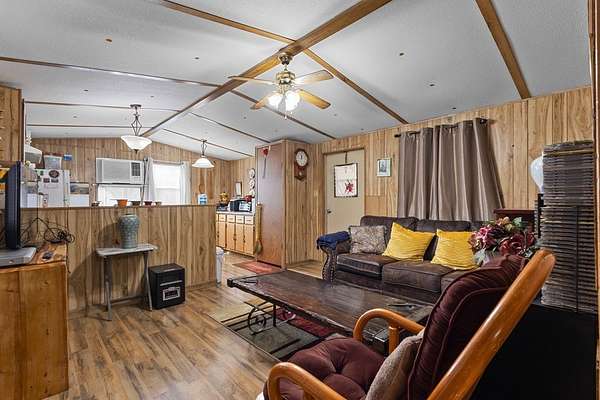 This three bedroom, two bath manufactured home has a carport, a large workshop, and paved road frontage. This property is high and dry. Property has a very large front yard and would be an excellent location to build a future dream home. This home feels private, yet it is close to the local schools and shopping. Call today for a private showing!