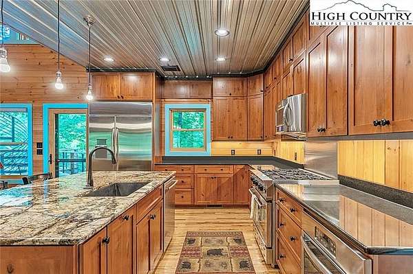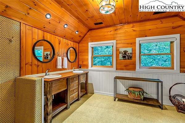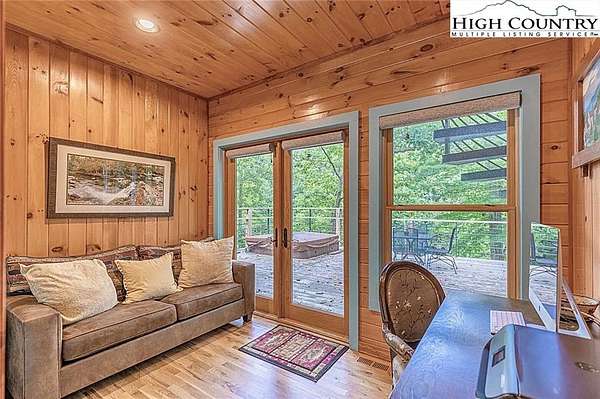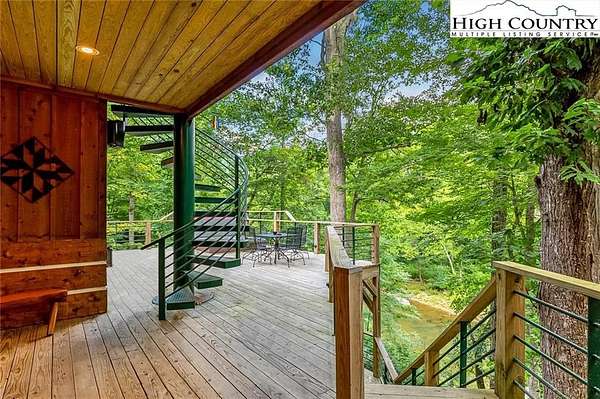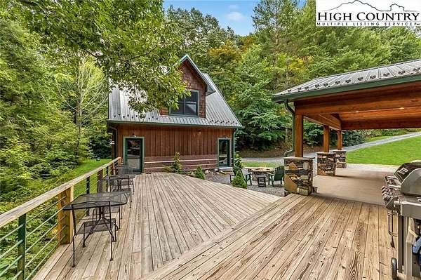 A true showstopper on the Watauga River, this income-generating mountain retreat is anything but ordinary. Imagine arriving at your fully furnished, mountain-contemporary luxury cabin, where every detail--from the soaring vaulted ceilings to the striking industrial finishes--feels pulled straight from a design magazine. This property delivers the river's most marvelous displays, against the lush backdrop of the Blue Ridge Mountains. Step outside and you'll find outdoor living dialed up to eleven: spacious decks, a hot tub perched above the river, two firepits for late-night storytelling, a quiet fishing pond, and your own private stretch of river, perfect for tubing, swimming, fishing, kayaking, or just listening to the babbling water flow by. Inside, the open-concept layout is perfect for entertaining, while the main house's three bedrooms each offer spa-like ensuite baths that make every morning a five-star getaway. The detached two-car garage isn't just for parking--the second story offers a sprawling game room with a pool table, entertainment center, kitchenette, and a fourth full bath, making it a hub for fun and relaxation. And that's not all. You also enjoy access to a shared riverfront common area, for plenty of riverfront space to play and relax. Whether you're looking for a high-end rental powerhouse, or just a luxury sanctuary by the river, this is mountain living at it finest. Come see this property today!