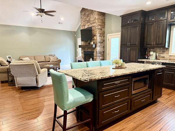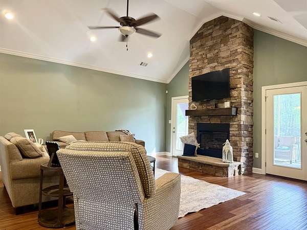 Stunning basement home on 10.46 acres with in-ground pool and exceptional space for living & entertaining! This impressive property offers approximately 4,893 sq ft of living space (excluding a separate 11’ x 32’7” storage room) and features 6 bedrooms, 4 bathrooms, and two full kitchens—both with island seating. The main level includes 4 bedrooms, 3 bathrooms, a spacious living room, formal dining area, well-appointed kitchen, mudroom, and laundry room, along with access to a screened-in porch and deck - perfect for enjoying the outdoors. The walk-out basement opens directly to the pool area and provides a complete second living space with a full kitchen, living room, dining area, 2 bedrooms, 1 bathroom, game room, bonus/workout room, and a large covered patio. Additional highlights include granite countertops throughout both kitchens, all bathrooms, and the laundry room, two walk-in pantries, abundant storage, and a 2-car garage. Outside, you’ll find a 20x40 in-ground pool and plenty of room to roam across 10.46 acres - offering privacy and versatility in a beautiful setting. A rare opportunity with space, function, and flexibility - this property truly has it all!