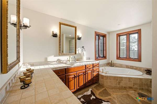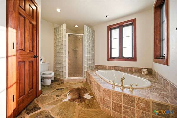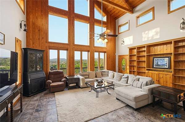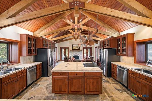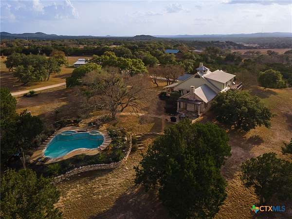 IF YOU ARE LOOKING FOR YOU OWN PARIDISE, THIS IS IT. 3985 SF MAIN HOME, 1364 SQ FT CABIN, BARN, WORKSHOP WITH 4 BAYS (GARAGE) HEATED POOL & SO MUCH MORE. NO RESTRICTIONS OR HOA TO DEAL WITH.MAIN HOME IS A CUSTOM-BUILT ONE-OF-A-KIND HOME WITH MASSIVE LIVING, EATING AND KITCHEN AREAS MADE FOR ENTERTAINING THE LARGEST GROUPS. THE MASSIVE LIVING AREA CENTERS AROUND THE 30 FOOT CATHEDRAL CEILINGS, HAND-SCRAPED WHITE OAK FLOORS, FLOOR TO CEILING STONE FIREPLACE, AND ANDERSON E-SERIES WINDOWS WITH FANTASTIC VIEWS OF HILL COUNTRY. THE KITCHEN IS THE ENVY OF EVEN THE MOST REFINED CHEF WITH IT'S TALL WOOD CEILIINGS, STONE COUNTER TOPS, HUGE ISLAND WITH STOVE, LOTS OF CABINETS, 2 BUILT-IN OVEN (2 TOTAL), WINE RACK, ADJOINING BREAKFAST ROOM/2ND LIVING AREA WITH FIREPLACE, POT RACK ABOVE THE ISLAND AND SO MUCH MORE. THE MASSIVE DINING ROOM OPENS TO THE KITCHEN AND HAS ENOUGH ROOM FOR THE LARGEST TABLE YOU COULD EVER WANT AND FANTASTIC VIEWS. THE MASTER BEDROOM FEATURES A PRIVATE PATIO, LUXURY BATH FEATURING A LARGE OVAL TUB AND SEPARATE SHOWER PLUS BIG WALK-IN CLOSET. THERE IS ALSO A SECOND BEDROOM DOWNSTAIRS AND ONE UPSTAIRS WITH DECK OVERLOOKING HILL COUNTRY. IN ADDITION TO THE UPSTAIRS BEDROOM THERE IS ALSO A LOFT OFFICE WITH VIEWS OF HILL COUNTRY. AS AMAZING AS ALL THIS IS THERE IS MORE. A 1364 SF CABIN WITH WRAP-AROUND PORCH TO TAKE ADVANTAGE OF THE FANTASTIC VIEWS, A LIVING AREA FEATURING FLOOR TO CEILING WINDOWS, AN UPSTAIRS BEDROOM WITH FANTASTIC VIEWS. THE KITCHEN FEATURES HAND-CRAFTED WOOD, CABINETS, COUNTERS AND ISLAND WITH LOTS OF DRAWERS PLUS LOTS OF CABINET STORAGE. THERE IS A SMALL SECOND BEDROOM DOWNSTAIRS. BUT THIS IS STILL NOT ALL. THERE IS A TWO LEVEL HEATED, RESORT STYLE POOL AND SPA, A 30 X 30 HEATED AND AIR-CONDITIONED SHOP, A BARN WITH ELECTRICITY AND SO MUCH MORE. THIS IS THE ULTIMATE IN COUNTRY LIVING BUT STILL CLOSE TO EVERYTHING. ONLY 10 MINUTES TO BANDERA, 20 TO HELOTES AND ABOUT 40 MINUTES TO SAN ANTONIO AIRPORT OR DOWNTOWN. ALL WE NEED NOW IS YOU!