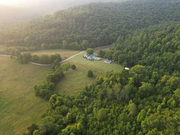 Nestled deep within 300 acres of peaceful countryside, this breathtaking 10-bedroom, 9-bathroom estate offers unmatched privacy, beauty, and space. Surrounded by mature timber, flowing creeks, and scenic landscapes, the property features nearly 60 acres of tillable cropland--perfect for farming or lease income. A charming old wooden covered bridge adds rustic character, while winding streams and natural terrain invite exploration and tranquility.