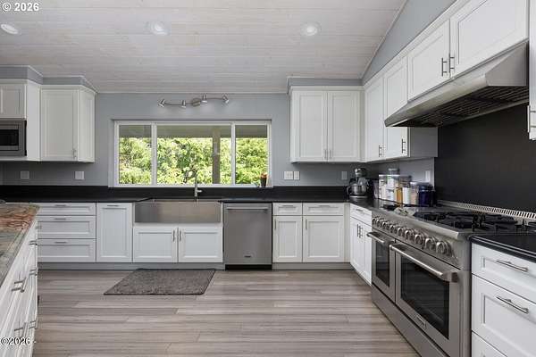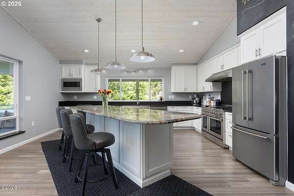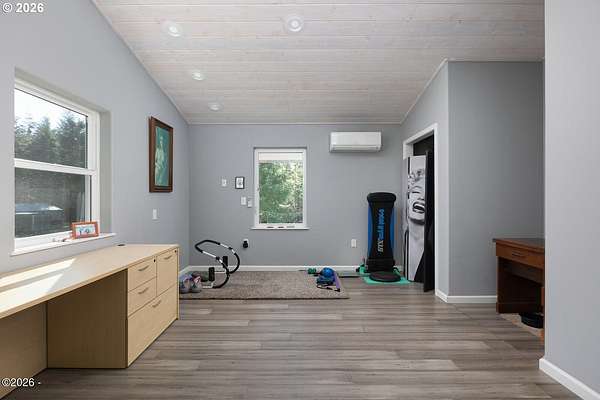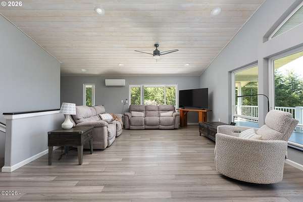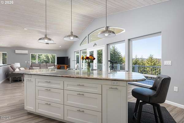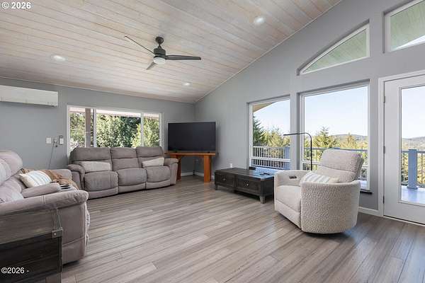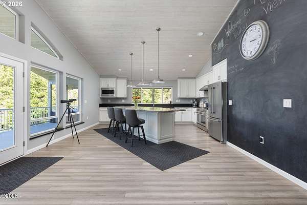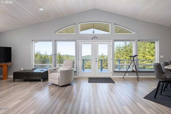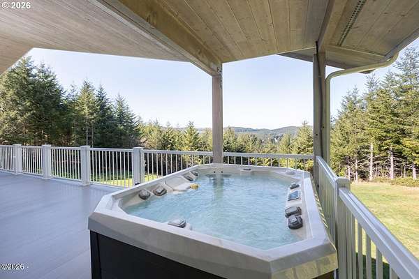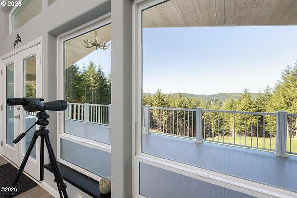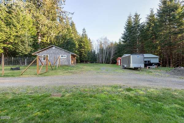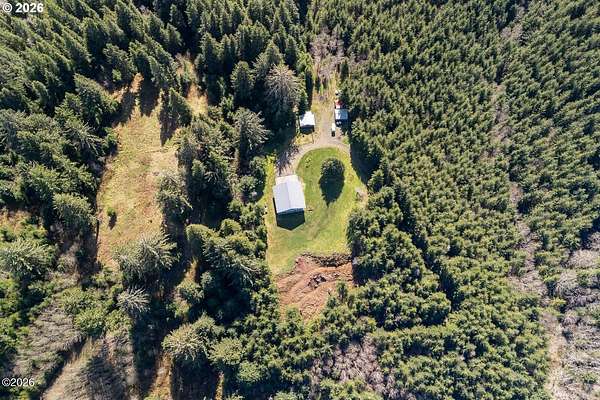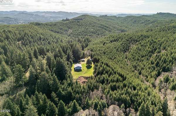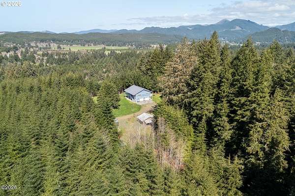 Experience ultimate privacy and country living with this stunning 2019 custom-built home, surrounded on two sides by Weyerhaeuser-managed timberland. Designed to maximize breathtaking views, the home features a reverse living floor plan, vaulted ceilings, and an open-concept main level. The gourmet kitchen is a centerpiece, boasting a massive granite bar, side-by-side double oven with built-in grill, and high-quality cabinetry with pull-outs. The living area opens to a large wraparound aluminum deck with a hot tub-perfect for entertaining or simply enjoying the scenery. The primary suite includes a spacious walk-in closet, while a second bedroom or home office overlooks the yard. The lower level provides a two-car garage, flexible basement space, and durable concrete surrounds for convenient access. Additional features include a whole-house propane backup generator, private well with excellent water, septic system with a 1,000-gallon reserve tank, and stackable washer/dryer. The property also offers well-maintained fir timber, a gated orchard with apple and cherry trees, an insulated hunting blind, and expansive lawn areas. Outdoor amenities include a finished outbuilding with a guest bedroom and wood stove, a detached 20x24 garage, and an insulated game cooler. This rare property perfectly combines modern comfort, privacy, wildlife, and usable timber, offering a one-of-a-kind country lifestyle. Location & Nearby Activities: Situated in the heart of the Oregon Coast Range, just 4 miles north of Siletz, 20 minutes to Toledo, 30 minutes to Newport, and about 45 minutes to Lincoln City. Newport offers oceanfront attractions, the Oregon Coast Aquarium, historic bayfront shopping, fine dining, and recreational activities such as boating, fishing, hiking, and beachcombing. The surrounding area is known for its serene atmosphere, long-time neighbors, and a mix of small farms, pastureland, and timber properties, providing a peaceful rural lifestyle with wildlife and nature