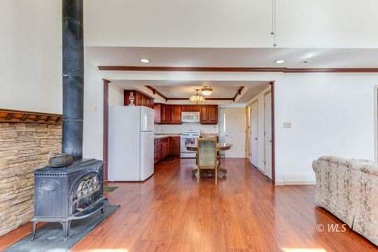 - Laminate/Vinyl Tile/Clay, Flooring Carpet, Flooring Ceiling Fans, Wood Burning Stove, Vaulted Ceilings, Flooring