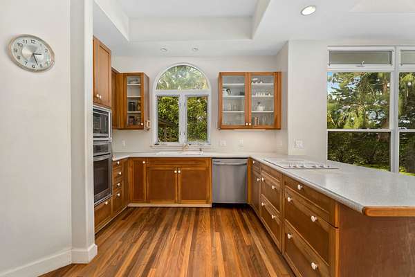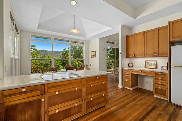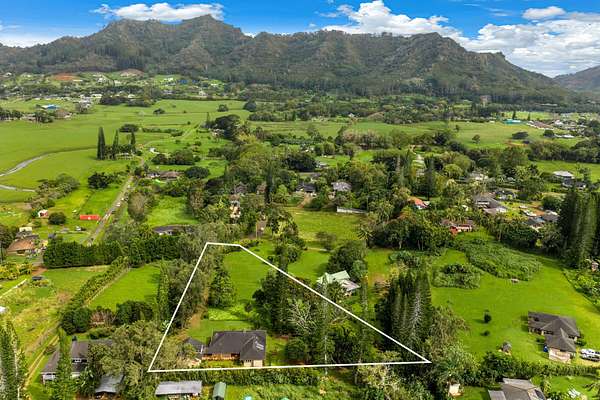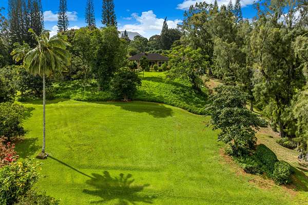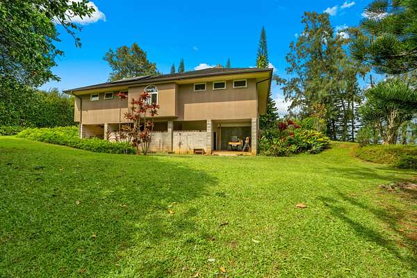 HILLTOP HIDEAWAY ON 2 ACRES! Well-built, stucco home and apartment with inspiring views of Sleeping Giant Mountain. Two attractive acres with the home situated at the top corner and rolling hills unfolding down to the road. Plenty of privacy, seclusion and peacefulness here. Once inside the home that was designed and built by the original owners, you will appreciate the soaring cathedral ceiling and oversized picture windows in the bright and breezy Great Room. The kitchen, dining area, and living room with fireplace flow together nicely. The Australian Brush Box (aka Chocolate Heart Eucalyptus) hardwood floors in the great room and kitchen were just refinished by Conrad Parducci and are gorgeous. On the bedroom wing are 2 spacious bedrooms that are welcome areas of retreat. Vaulted ceilings add to the spaciousness. Downstairs is an unexpected extra area that could be finished out as a hobby room, home office, workshop, home gym, or...... A breezeway connects the home with a large, 576 square foot, 2+ car garage / workshop and an upstairs one bedroom apartment that could be used several different ways. The Wailua Homesteads location is convenient and idyllic. With three scenic ways to get down the hill to historic Kapaa Town, beaches, or the airport this property is centrally located on the beautiful island of Kauai. The perfect package of a quality home, on a nice piece of land, in an ideal location. Not a CPR, but could be. Explore the possibilities to build another house and guesthouse for upside potential, or simply enjoy this lifestyle property for years to come.