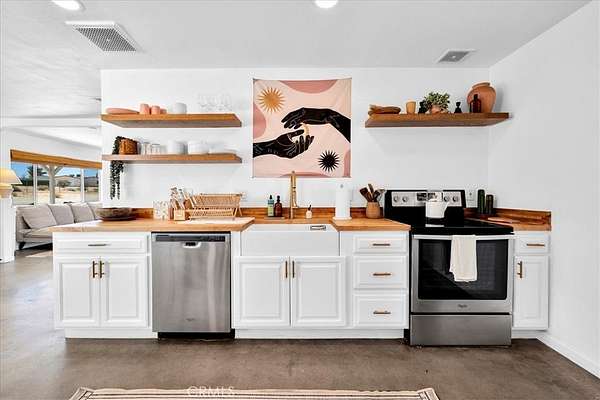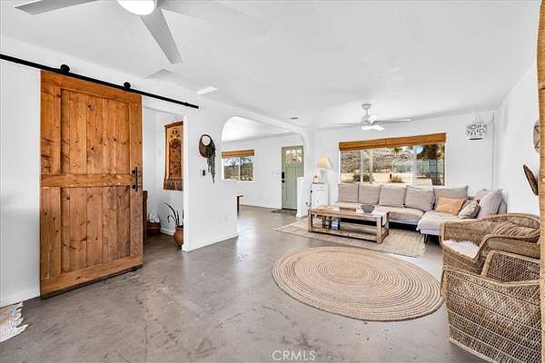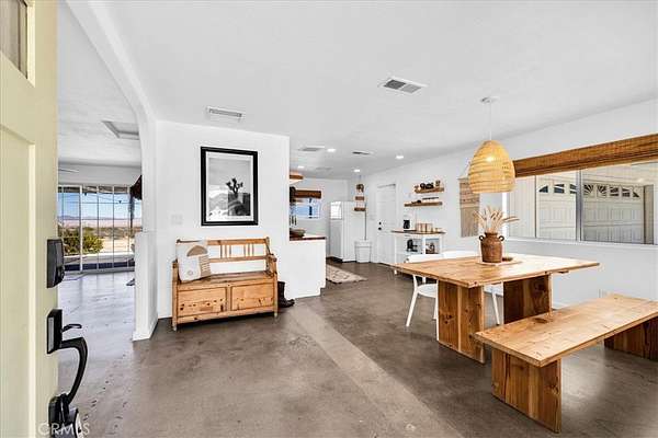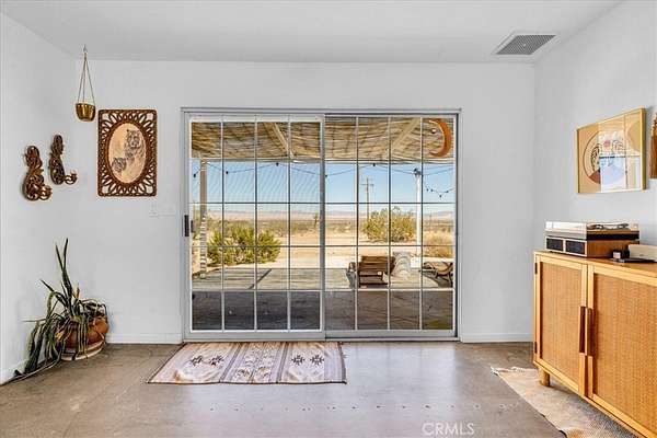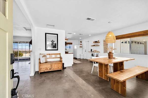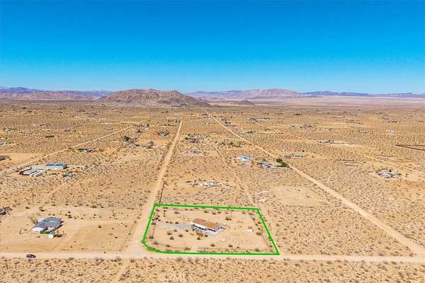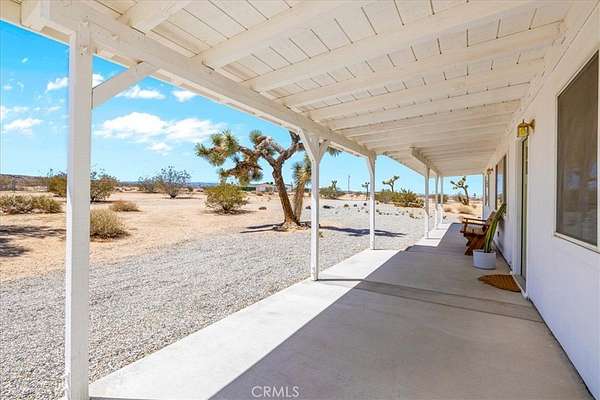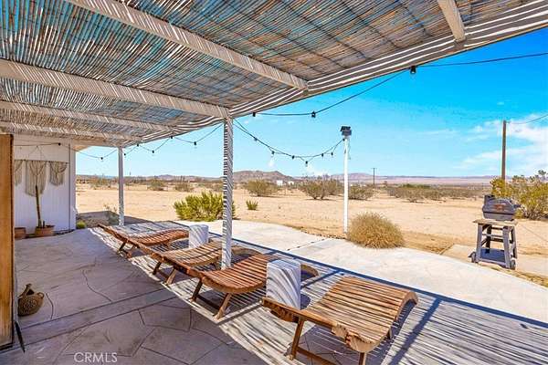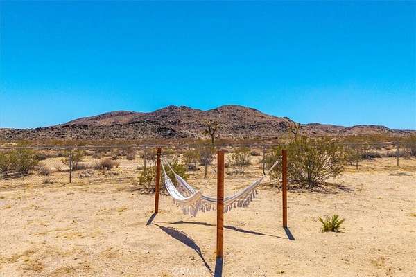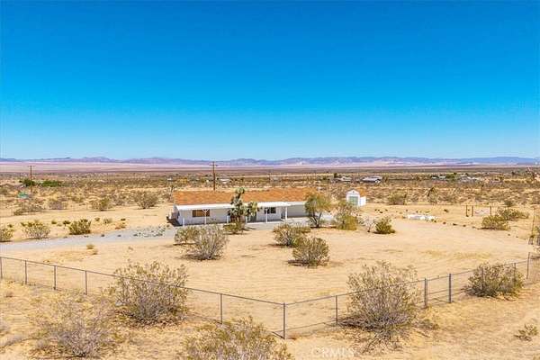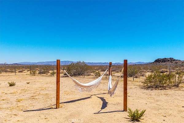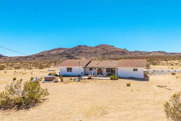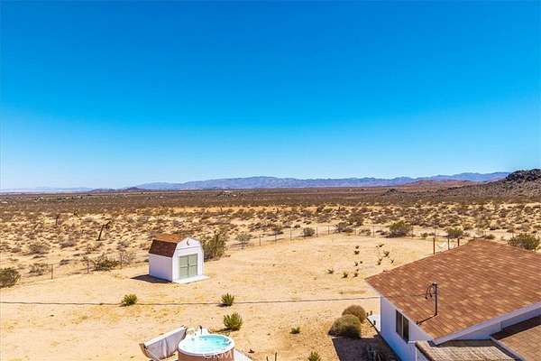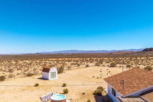 Tucked away in the peaceful expanse of the Mojave, Moonstone Mesa is a fully remodeled, fully furnished desert gem offering a rare blend of privacy, modern comfort, and iconic High Desert beauty. This stunning 2-bedroom, 2-bathroom home is situated on just over 2 acres of fully fenced land, directly adjacent to more than 100 acres of untouched Bureau of Land Management (BLM) land, ensuring uninterrupted views, total seclusion, and a direct connection to the raw beauty of the surrounding landscape. Thoughtfully redesigned from the inside out, the home features a remodeled kitchen with warm custom woodblock countertops with a clean, minimalist aesthetic that complements the desert surroundings. Both bathrooms have been tastefully updated with stylish, modern finishes, and the freshly painted eaves reflect the home's excellent maintenance and turnkey condition. Step outside and the magic continues. A custom-built patio cover offers shade and comfort for outdoor lounging, while the spa provides a relaxing place to soak under the stars. A custom-built shed expands your options--perfect for a creative studio, extra sleeping space, or a private retreat. Enjoy sweeping mountain views by day and some of the clearest night skies in the region, ideal for stargazing or simply unwinding by a fire pit. The property also includes a spacious attached two-car garage along with curated desert-inspired decor included in the sale--making this a true turnkey opportunity, whether you're seeking a primary residence, vacation home, or income-generating investment. Currently operating as a successful short-term vacation rental in the High Desert, Moonstone Mesa has a proven track record and outstanding guest reviews. Its strategic location--just minutes from Joshua Tree, Joshua Tree National Park, Pioneertown, Yucca Valley, and a short scenic drive to Palm Springs--makes it both a sought-after rental and a peaceful private sanctuary. Whether you're drawn to the tranquility of desert living or the potential of a well-established Airbnb, Moonstone Mesa offers a rare opportunity to own a piece of the High Desert dream--fully furnished, beautifully remodeled, and ready for your next adventure.