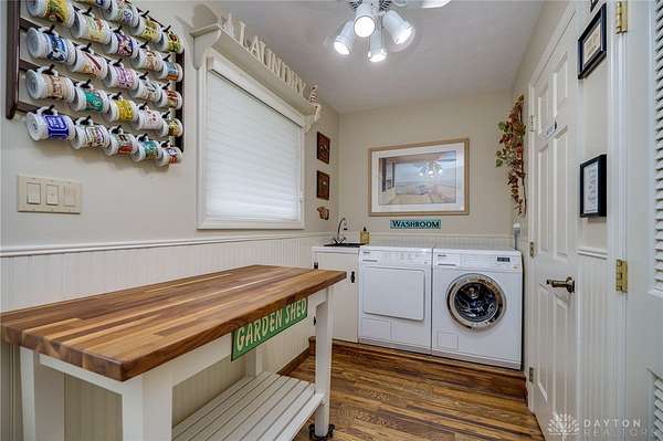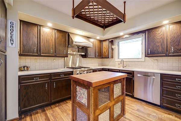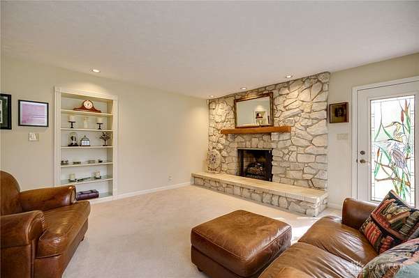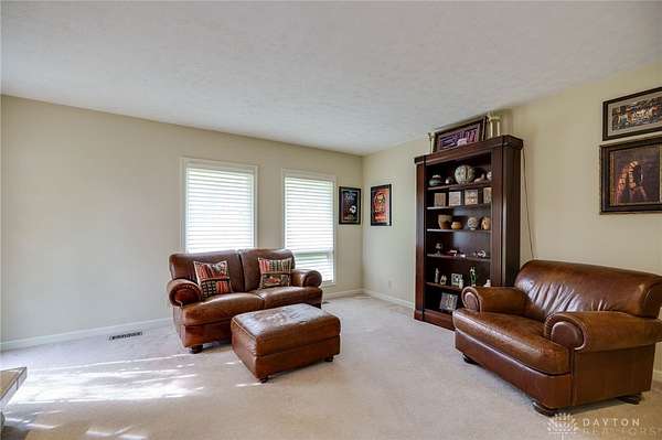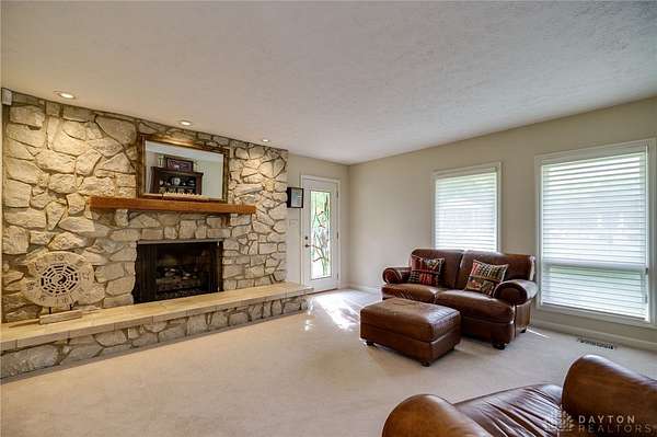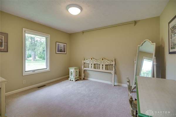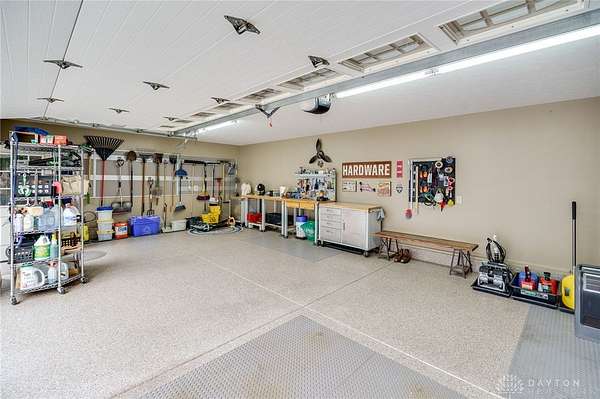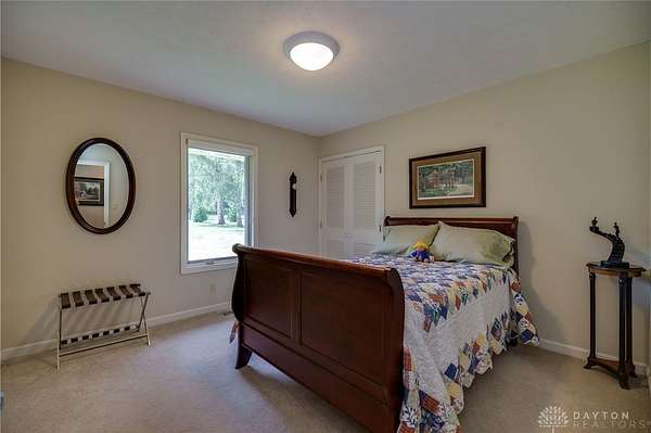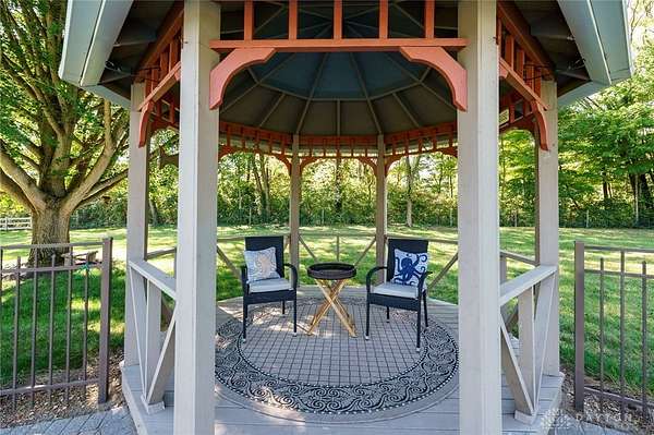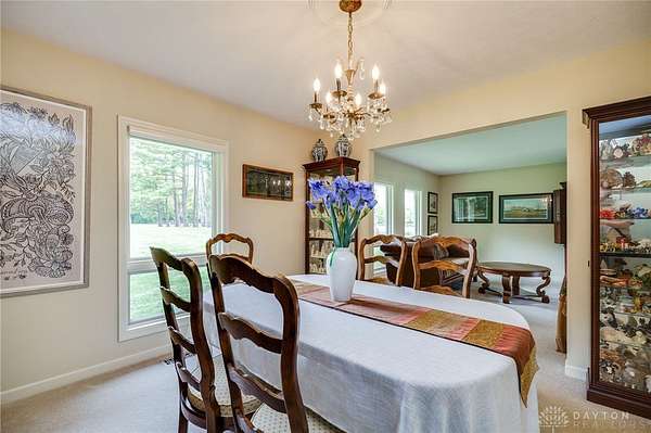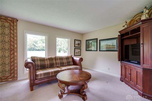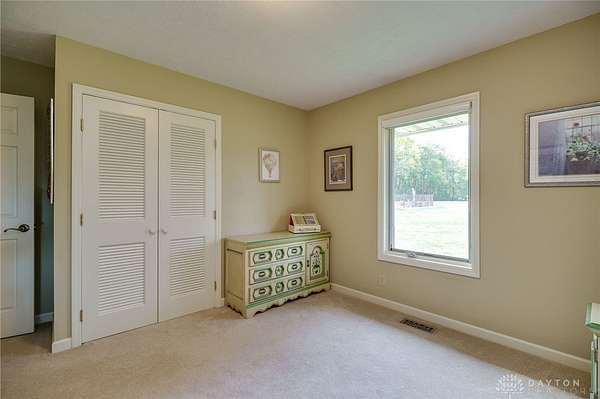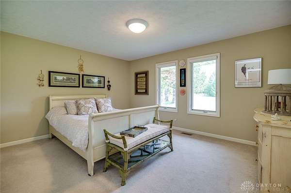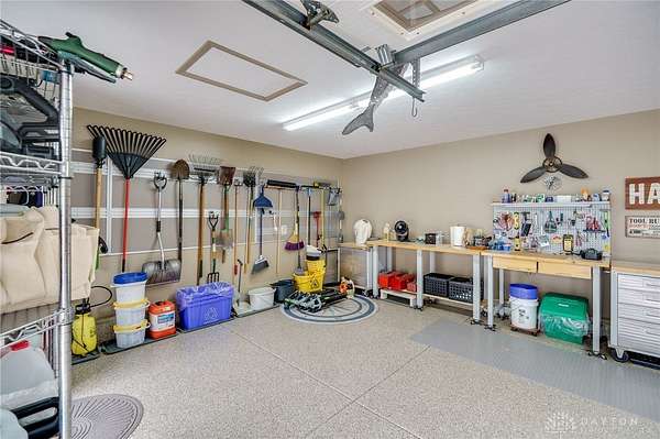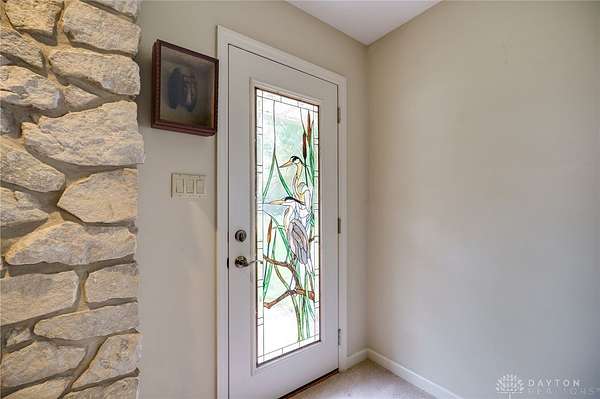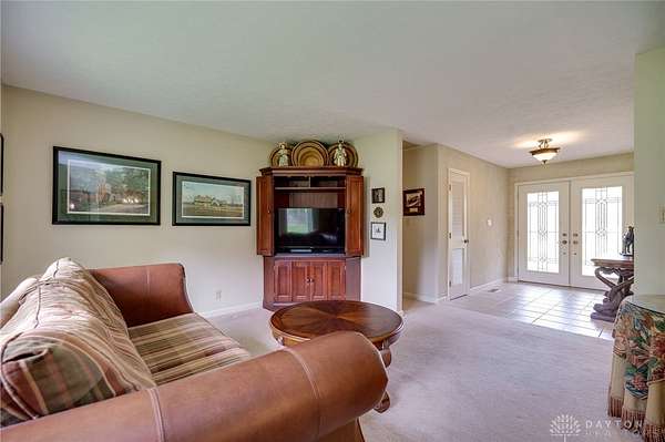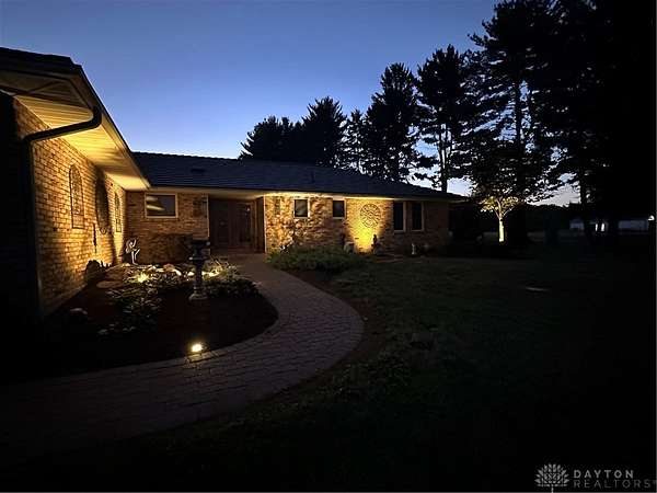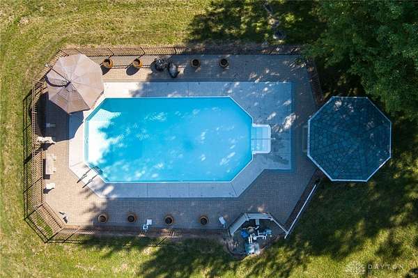 Welcome to 5975 Hunter Road, a meticulously maintained custom home set on 5.37 acres of beautiful, park-like land with a private woodline in desirable Mad River Township. This thoughtfully designed home offers high-end finishes throughout and a layout that balances comfort, privacy, and function. You're greeted by a spacious entryway that flows into a warm living and dining area, with a large kitchen just beyond featuring ample cabinetry, Corian countertops, high-end appliances. The tucked-away family room boasts custom built-in shelving and a welcoming gas fireplace, while all three generous bedrooms are thoughtfully separated from the main entertaining areas. The utility room includes a wash sink, and washer/dryer, while the lower level adds even more value with a large rec room, dedicated office space with custom stainglass , and a generous storage area. Over $60K worth of updates in the last 5 years and over $240K in updates in the last 10 years! Additional highlights include An attached 2-car garage and a detached 2.5-car garage with electricity and water, plus fenced-in heated in ground pool, whole-house Generac generator (2015), metal shake roof and gazebo (2023), leaf guard gutter system with underground drainage (2023), high-end Pella windows, California Closets built in and countertops throughout! Thoughtfully designed to max out storage in working space, updated LED lighting, two custom stained glass windows, Bryant HVAC system (2016), and a newly paved asphalt driveway (2023). Over 15 transferable warranties that can be provided to the new owner! A true one-of-a-kind property, offering luxury, privacy, and functionality--close to I-675, I-70, shopping, eateries, and WPAFB, while still maintaining a Low-traffic, country-style feel!